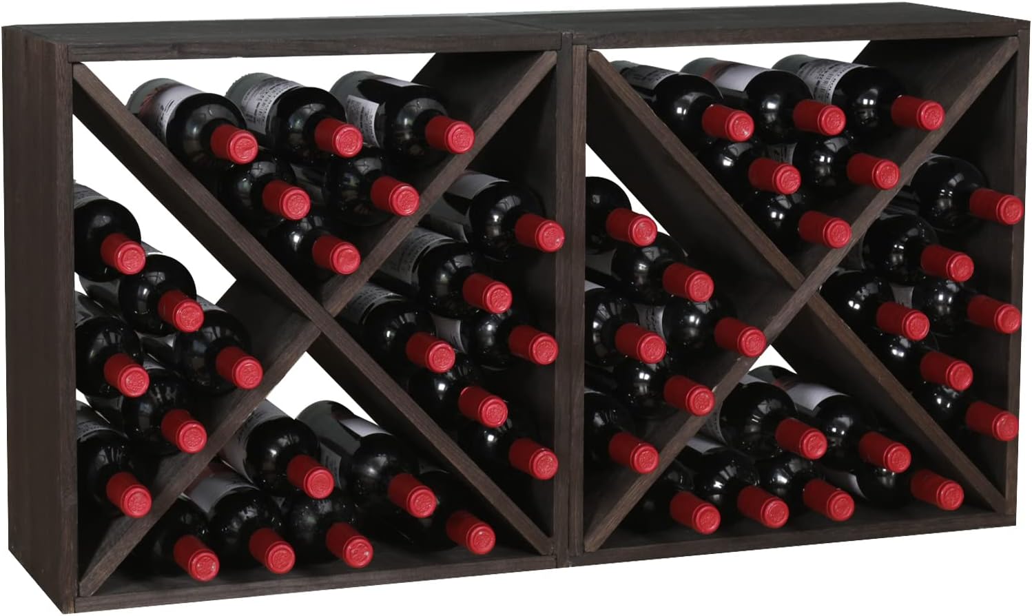 Wine Racks countertop Solid Wood Stackable Storage Rustic Retro Cube 48-Bottle Wooden Wine Rack Wine Cabinet(48BottleBlack)