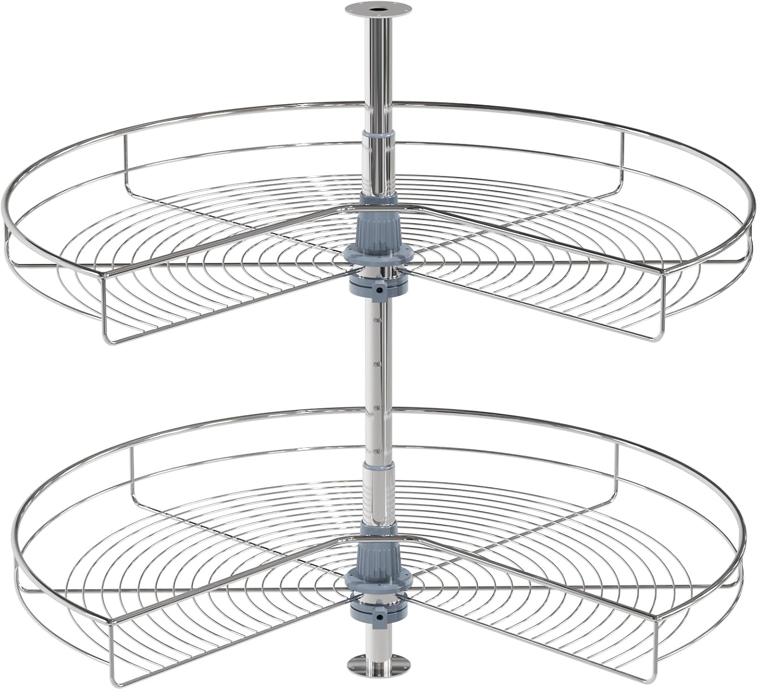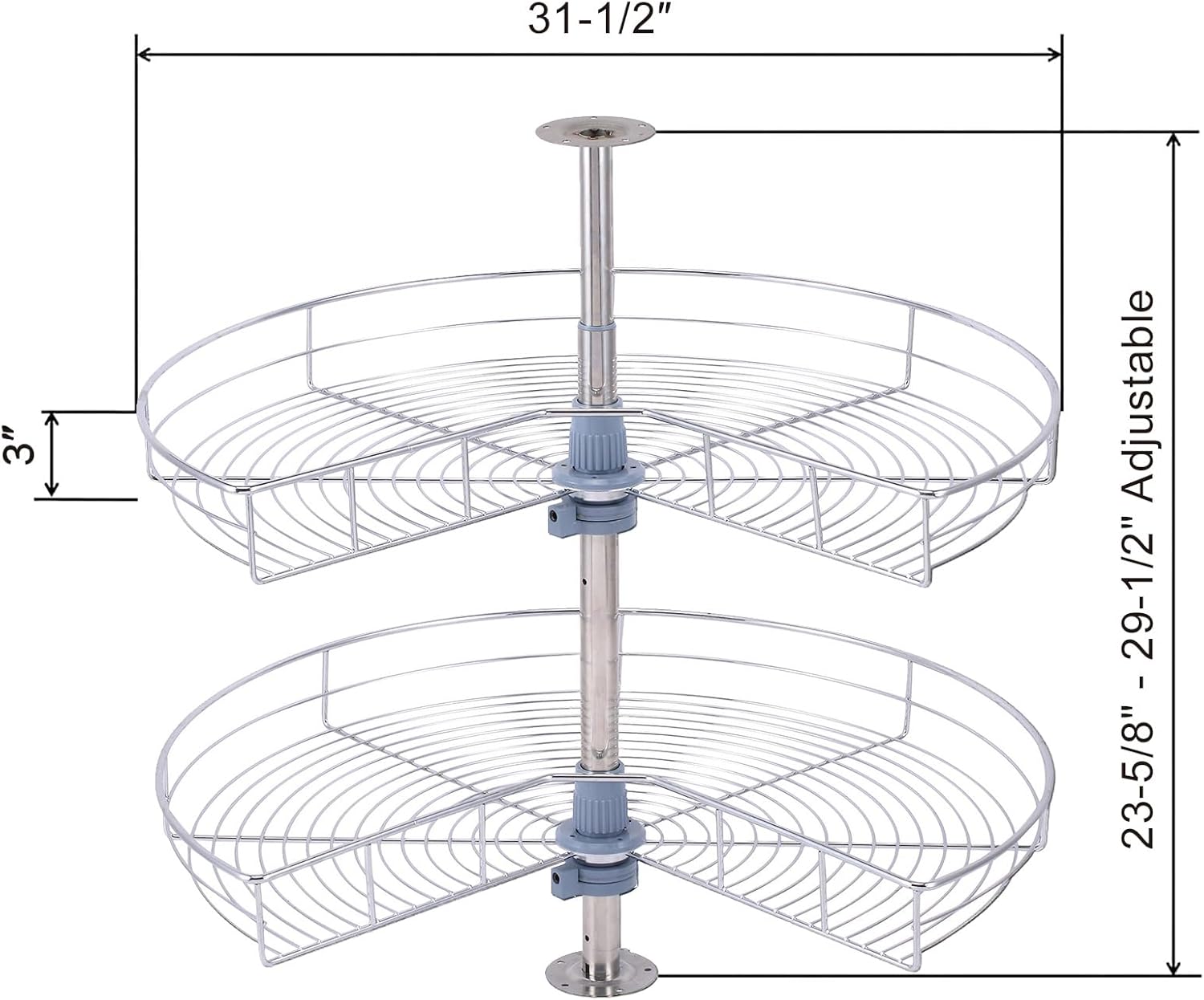 Dowell 32" Kidney Lazy Susan, 2 Shelves, Kitchen Base Corner Cabinet Organizer (Chrome 4001 270 32)