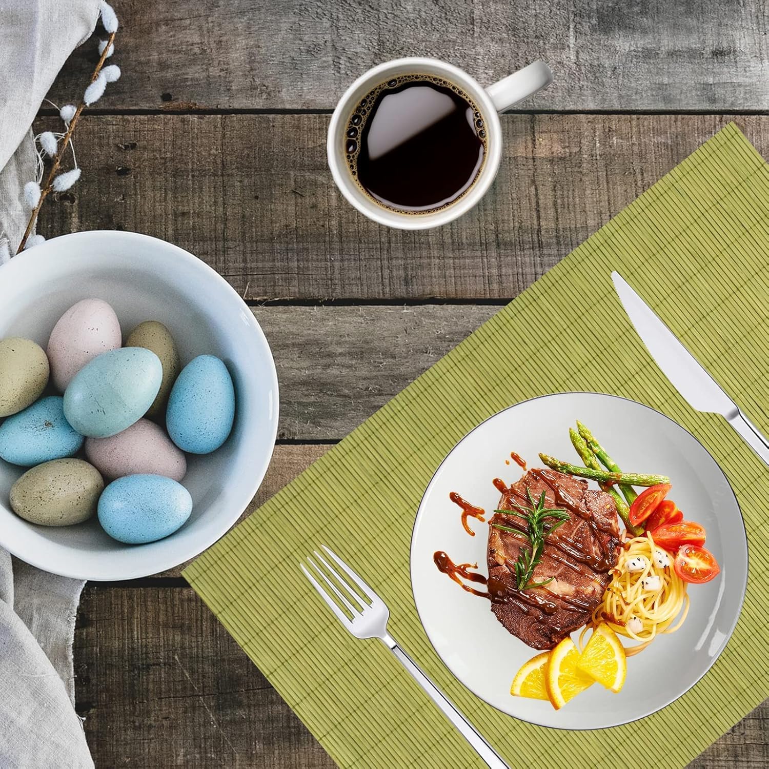 ANDSTAR Set of 8 Pcs Bamboo Placemats Sushi Rolling Mat Japanese Style Natural Anti-Slip Bamboo Placemats Washable Heat-Resistant Table Mats for Dining Room and Kitchen(Green)