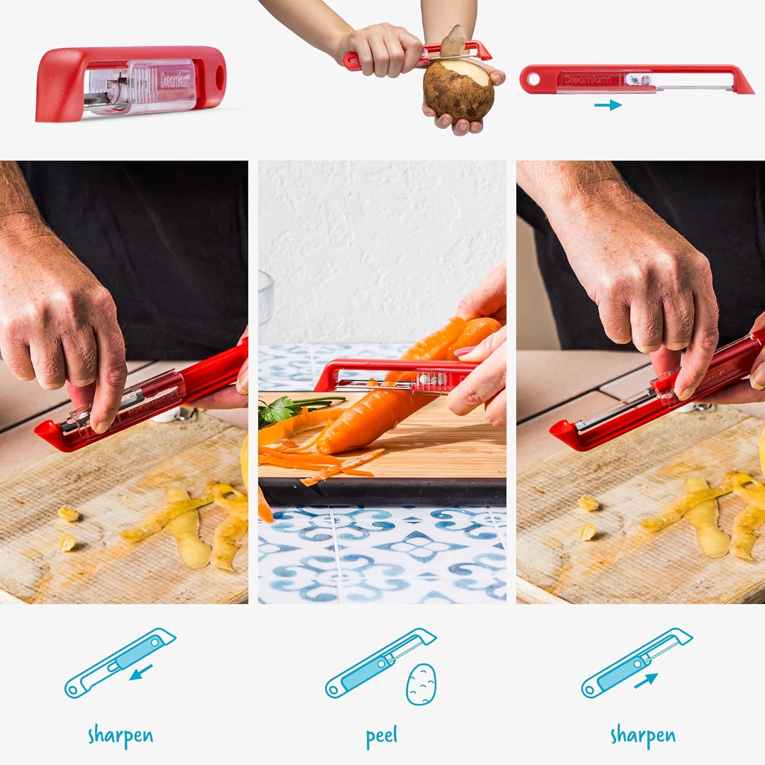 Dreamfarm Sharple Self-Sharpening Vegetable & Food Vertical Speed-Peeler - Red