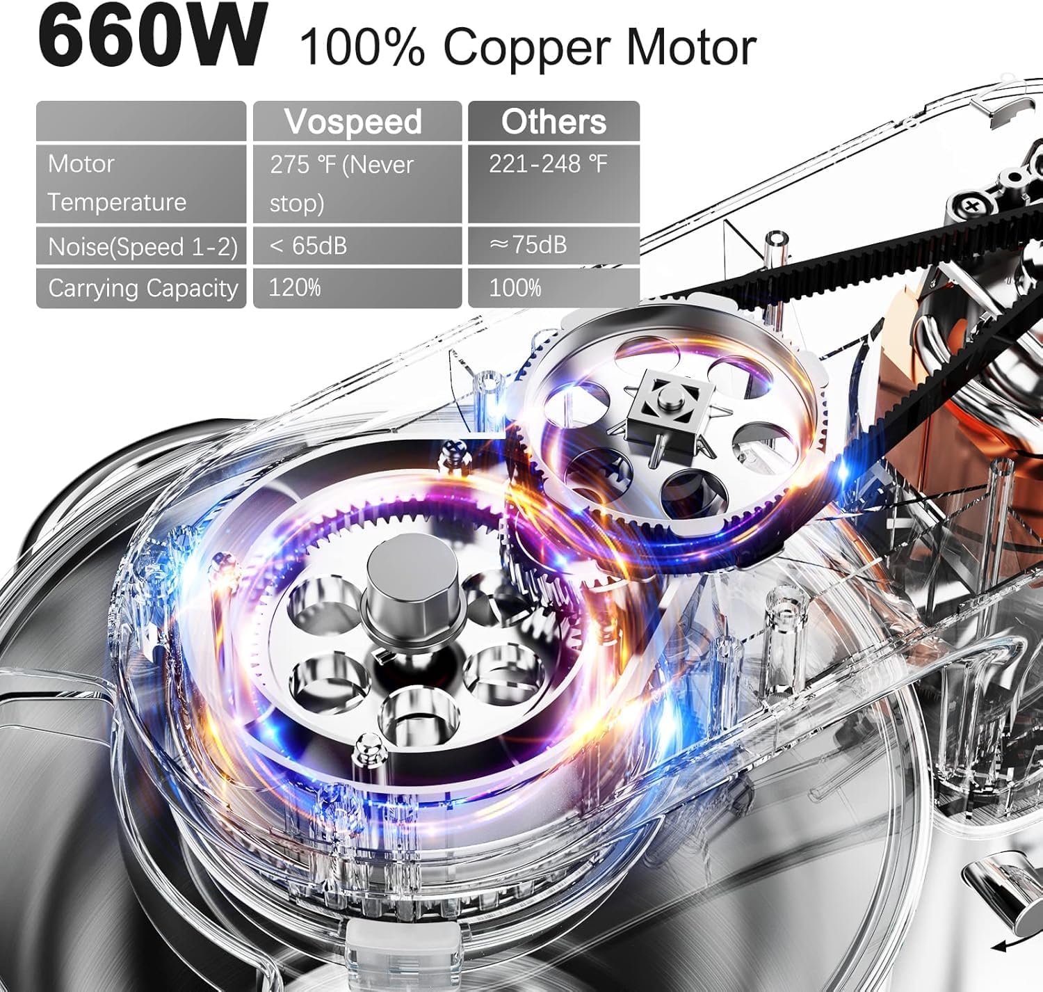 - Vospeed Stand Mixer: ETL-certified, with 24/7 support. Bake, blend, & grind with ease. Ideal for home use or gifts. Enjoy flawless mixing & reliable assistance.
