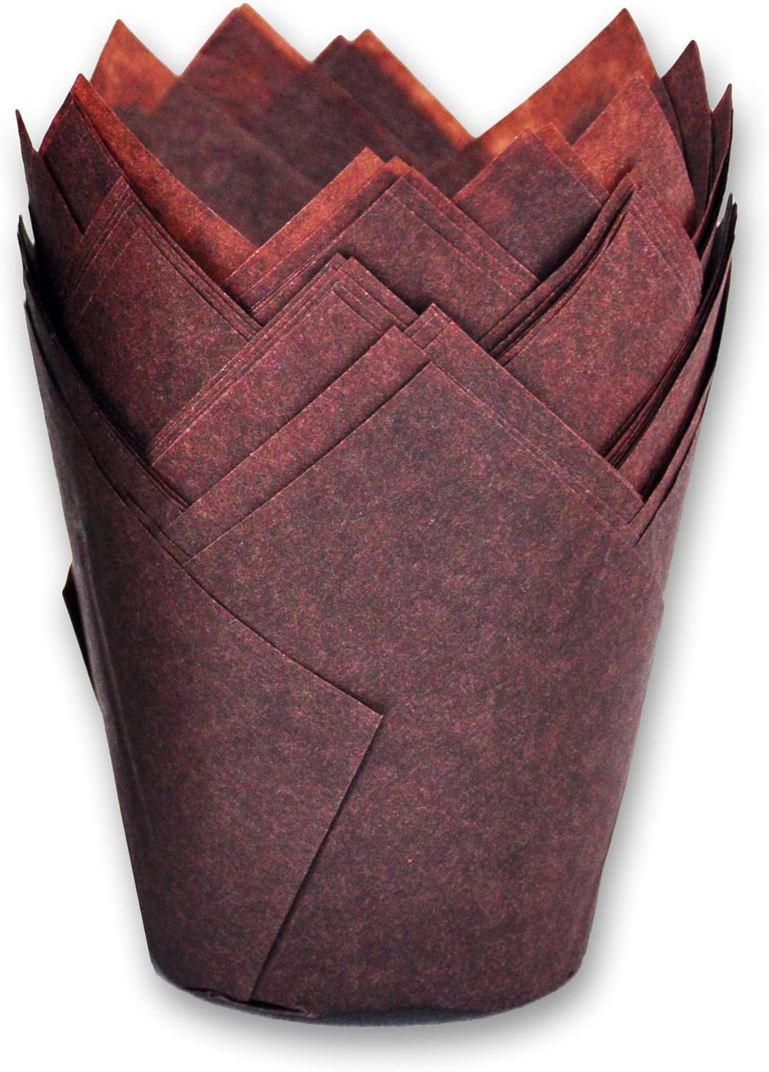 Large size Brown Tulip Baking Cups 2-1/4"(Base diameter) x 4"(Wall height) Greaseproof paper baking cupcake Muffin liners, Case of 130 pcs