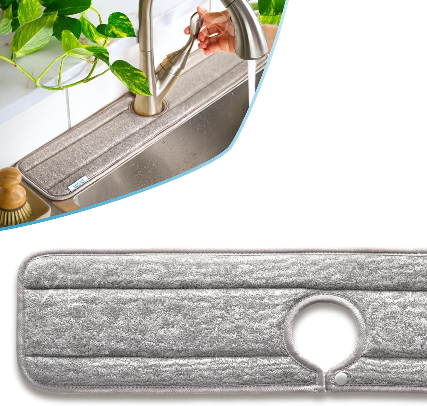 The Original Ternal Sinkmat Drip Catcher & Splash Guard, Faucet Mat for Sinks – Absorbent Microfiber, Machine Washable Counter Protector & Drying Mat for Kitchen, Bathroom or RV [Grey, XL, 1 Pack]