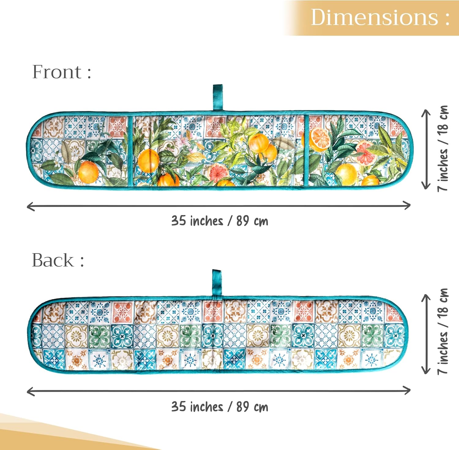 - Package includes: Includes 1 double oven mitt sized 7"x35". Perfect for handling hot cookware safely while adding a touch of European elegance to your kitchen. Designed in Europe and made in India with care