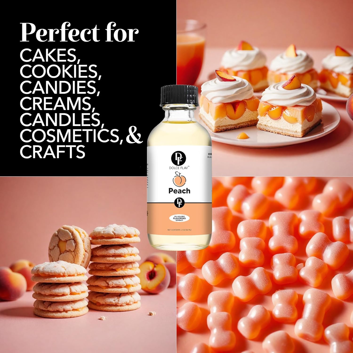 - Pure Peach Extract for Baking Bliss: Elevate your baking with our peach flavoring. Ideal for adding a luscious peach flavor to cookies, cakes, and pastries, this extract is a must-have for creating mouth-watering peach-flavored desserts, enhancing every bite with its delightful essence.