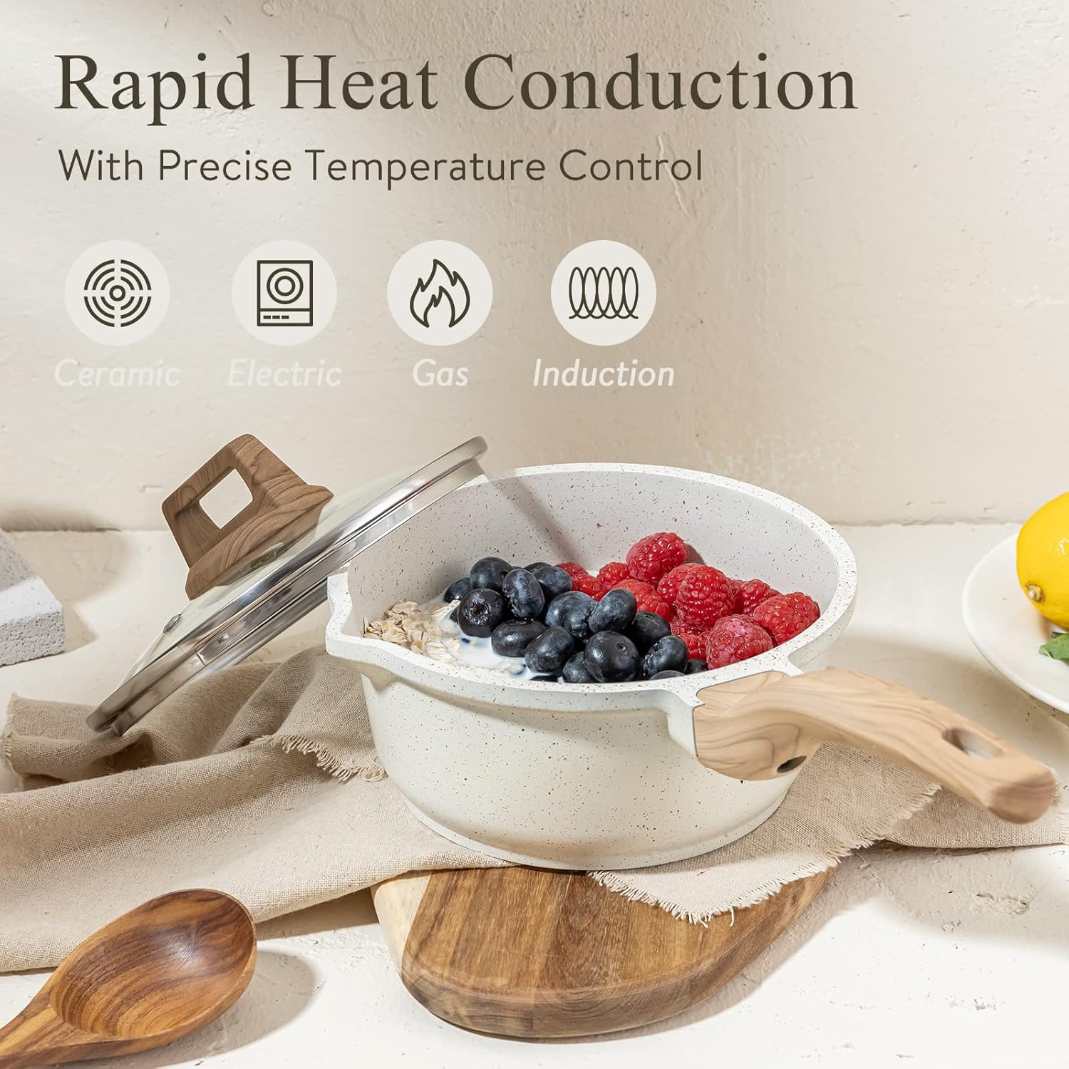 CAROTE 1.8Qt Sauce Pan Set with Lid Nonstick Saucepan Non Stick Sauce Pots Cooking Pot with Pour Spout, Easy to Clean, Small Kitchen Pots Induction Pot, PFOA FREE (White Granite)