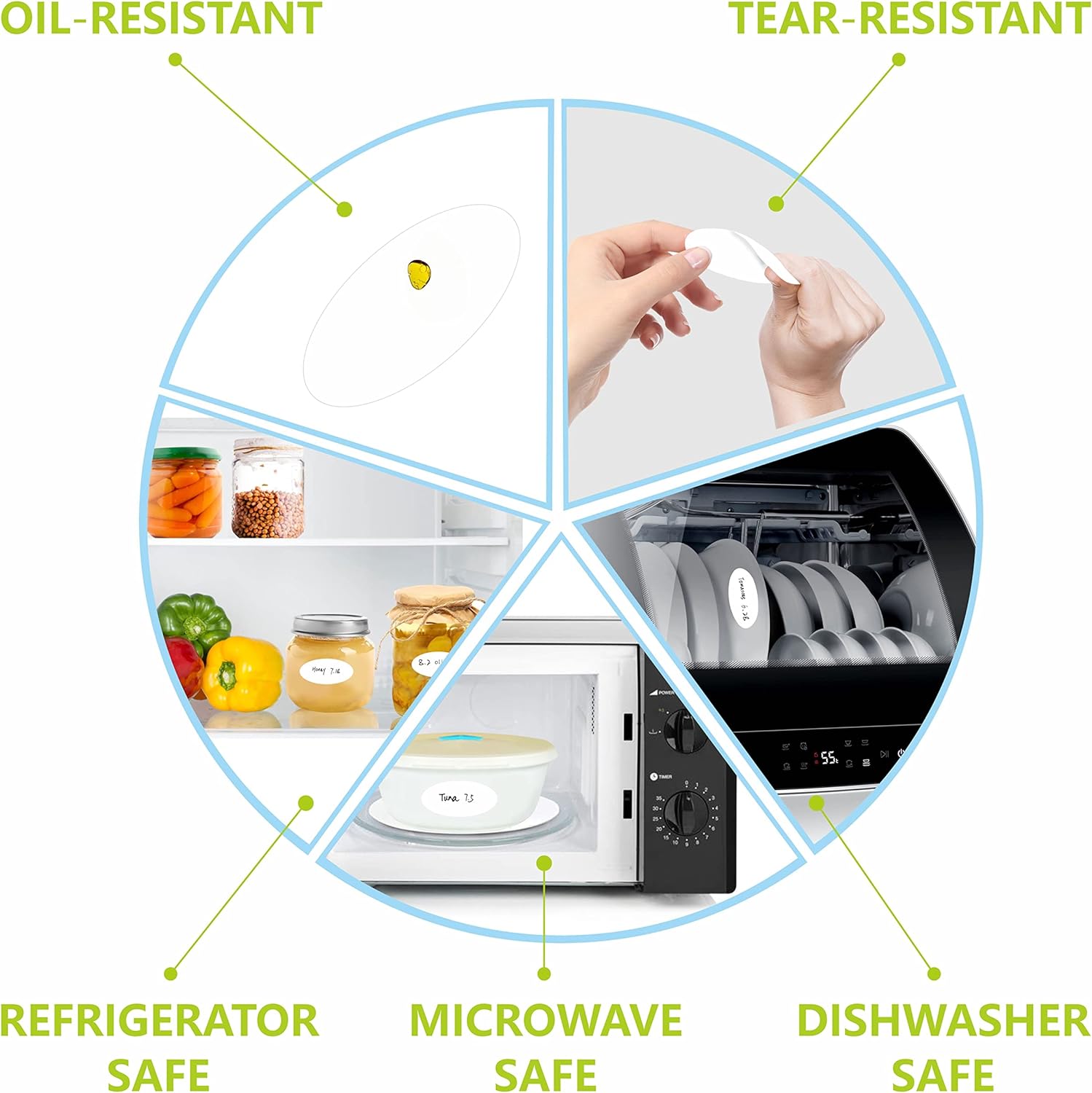 - Premium Quality: Specially made by formulated paper, sturdy and tear resistant. Plus high-quality glue, it will keep your reminder stay tight on food packages and peel off without sticky stain. Dishwasher, Microwave oven, Fridge all available.