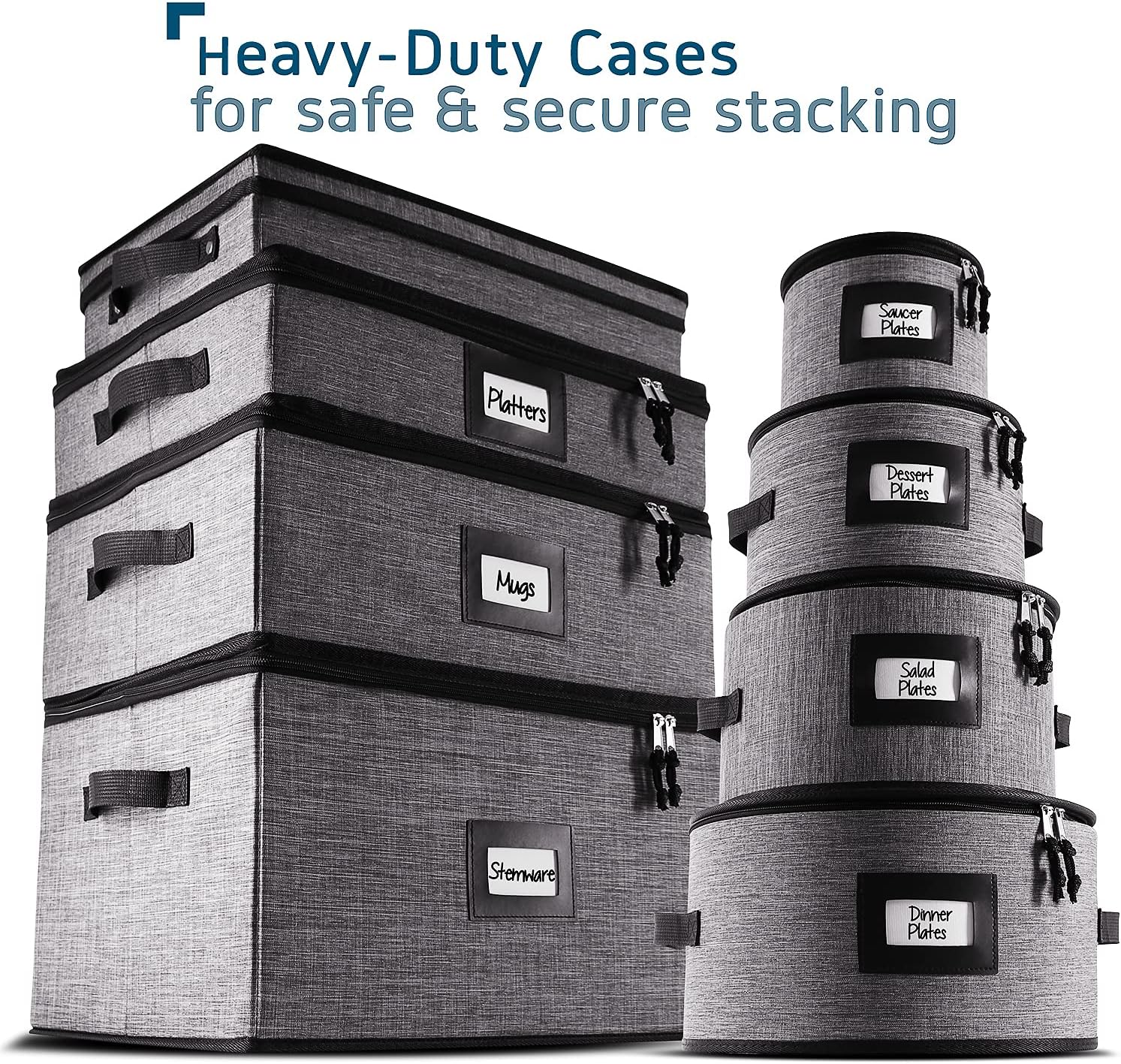 - Convenient and Stylish: Our glassware storage containers boast sturdy handles, zippered lids, and faux leather label slots for neat, elegant kitchen organization and storage.