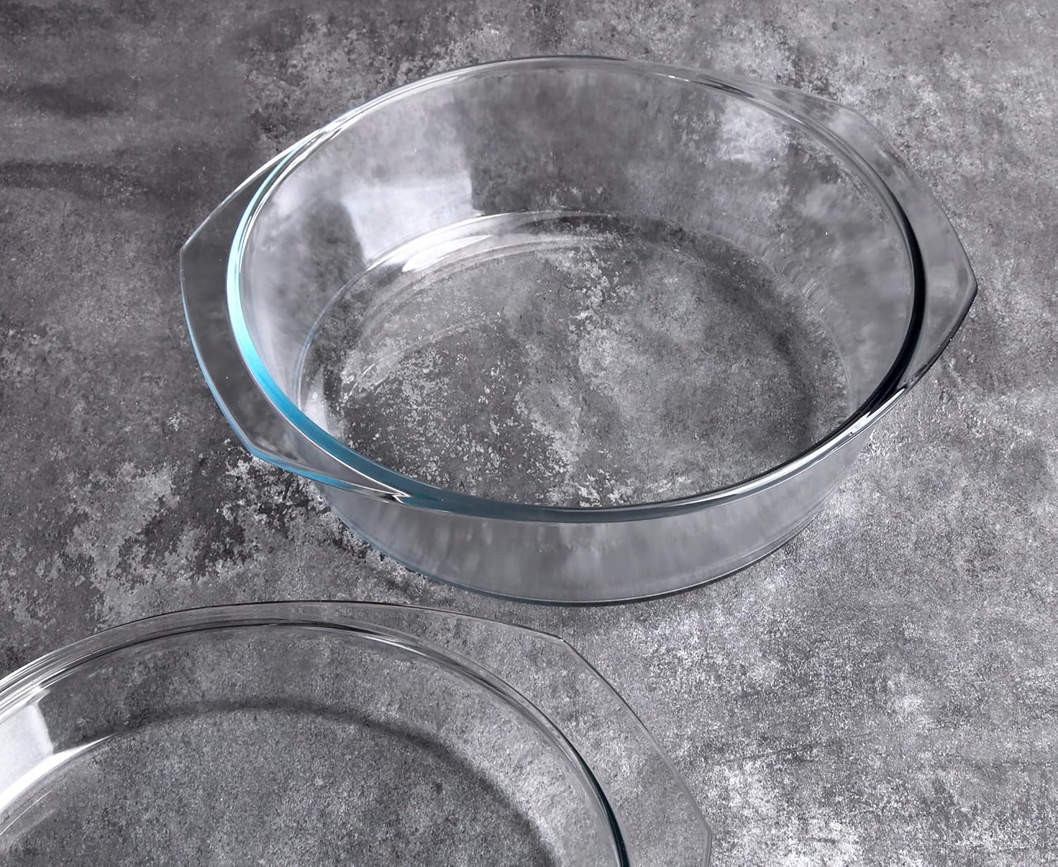 Round Tempered Glass Casserole Dish with Lid, Glass Casserole Baking Dish for Oven, Freezer and Dishwasher Safe - 3QT