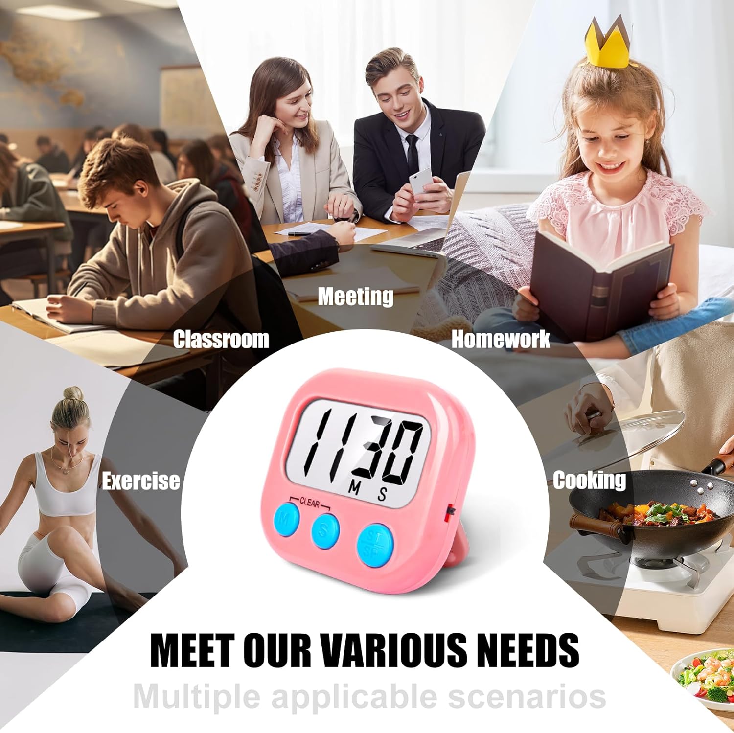 6 Pack Kitchen Timers Loud Ring Digital Timers for Cooking Magnetic Pink