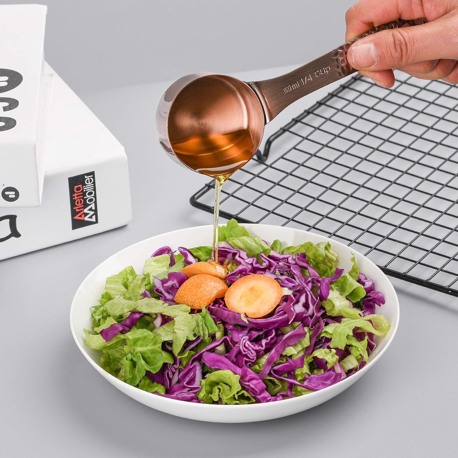 - Use with easy: The Copper measuring cups and spoons set belongs in every person’s <br>kitchen regardless of culinary skill. De-burred edges ensure you don’t get scratched <br>if you’re hand-washing them .Polished, comfortable to touch, high-end and beautiful, durable and convenient.