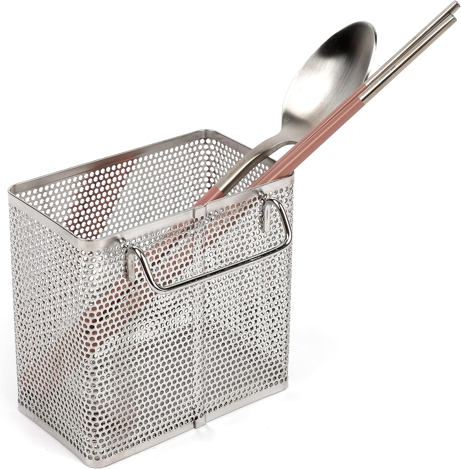 - Easy To Clean: This stainless steel silverware organizer keeps the kitchen sink and counters less cluttered, and the kitchen utensil drainer is easy to clean. This basket with holes in bottom can be rinsed with running soapy water, and ready to used again after drying.