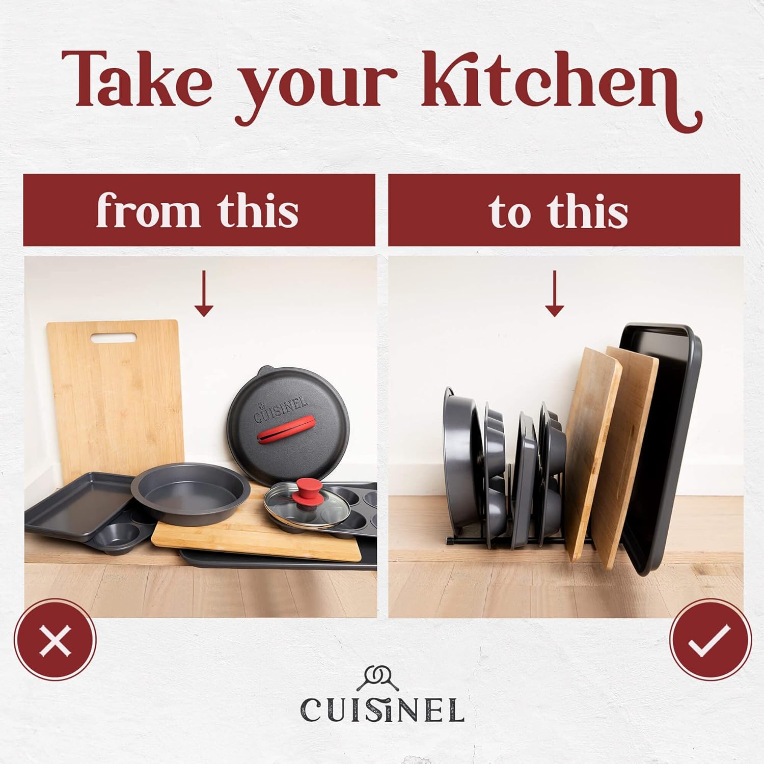 Cuisinel Lid and Dish Organizer Rack - 2-Pack Matte Black Kitchen Storage Organization Stand - Plate Holder, Pan/Pots Covers, Cutting Board and Cookie Sheet Divider - 7-Tier Cabinet/Counter Display