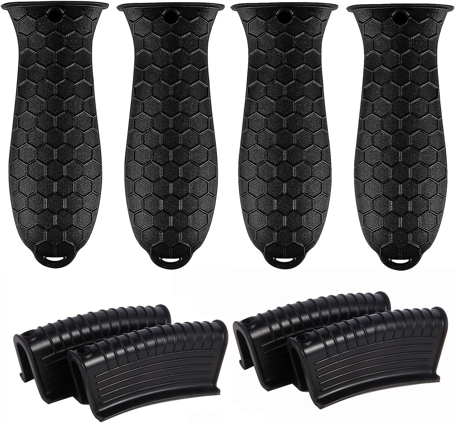 8 Pcs Non-Slip Silicone Hot Handle Holder & Assist Grips, Potholder for Cast Iron Skillets, Heat Resistant Handle Cover Sleeve for Frying Pans, Casserole, Cookware Handles, Black