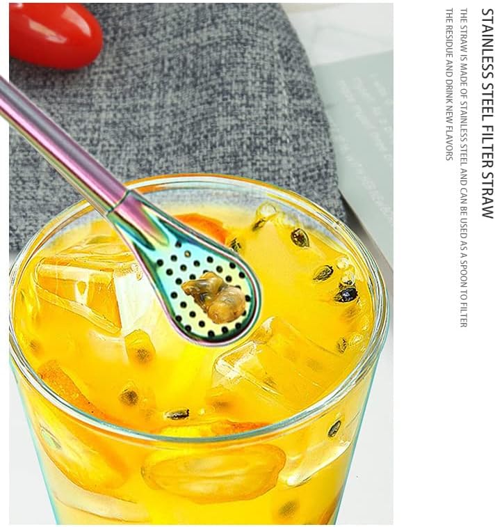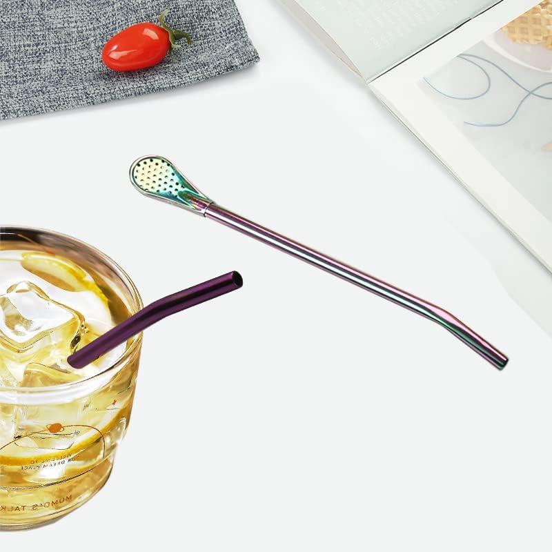 - Novelty Design-Reusable Colorful Drinking Straw Spoon:3 in 1 design, can be a straw or a stirring spoon, strainer spoon. Smooth and shiny surface is more comfortable to hold, double-sided spoon filter encryption pinhole processing, making it easier to drink tea.