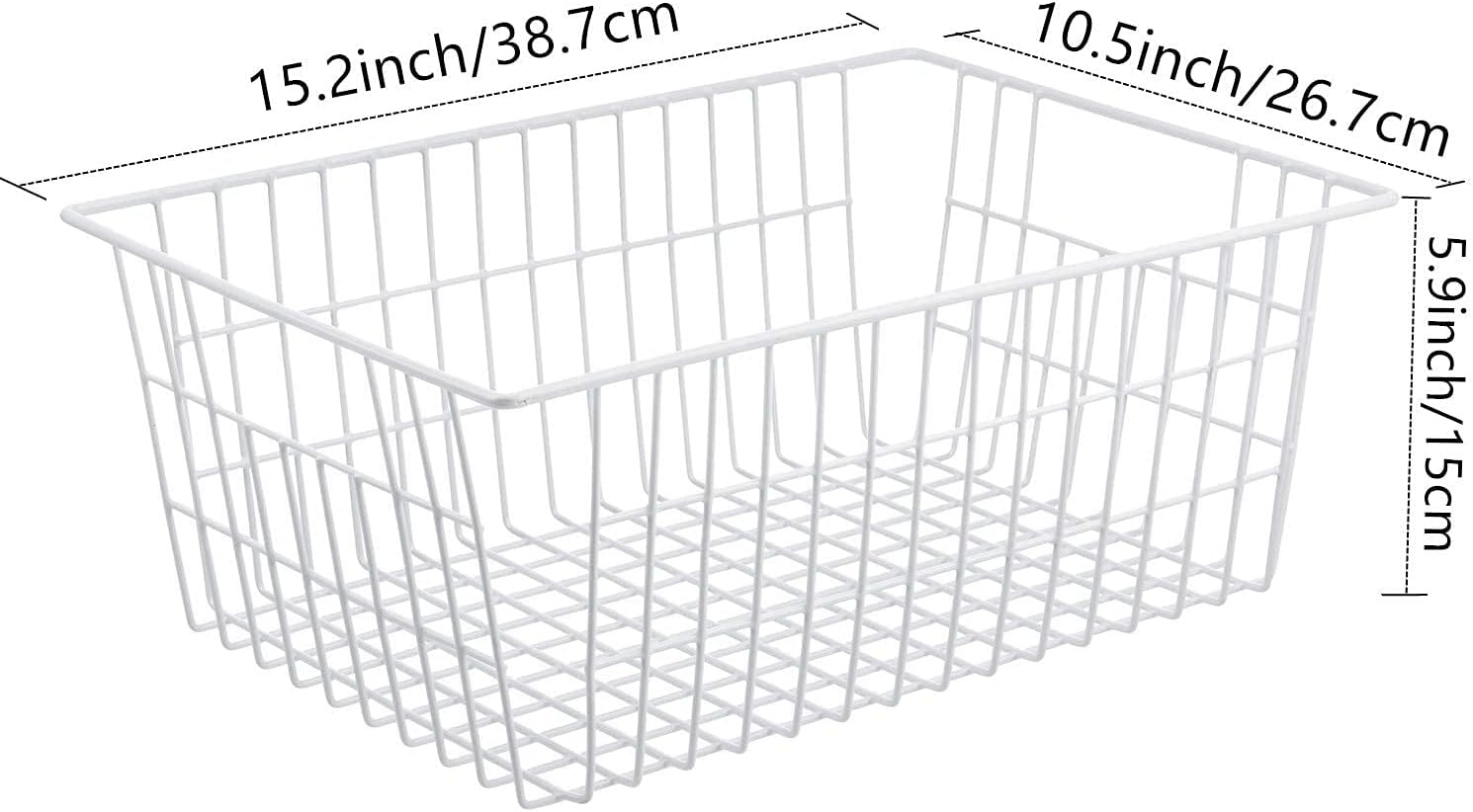 Redrubbit Wire Storage Baskets, Large Farmhouse Metal Freezer Basket Storage Organizer Bins with Handles for Kitchen Cabinets, Pantry, Closets, Bedrooms, Bathrooms, Set of 6, White