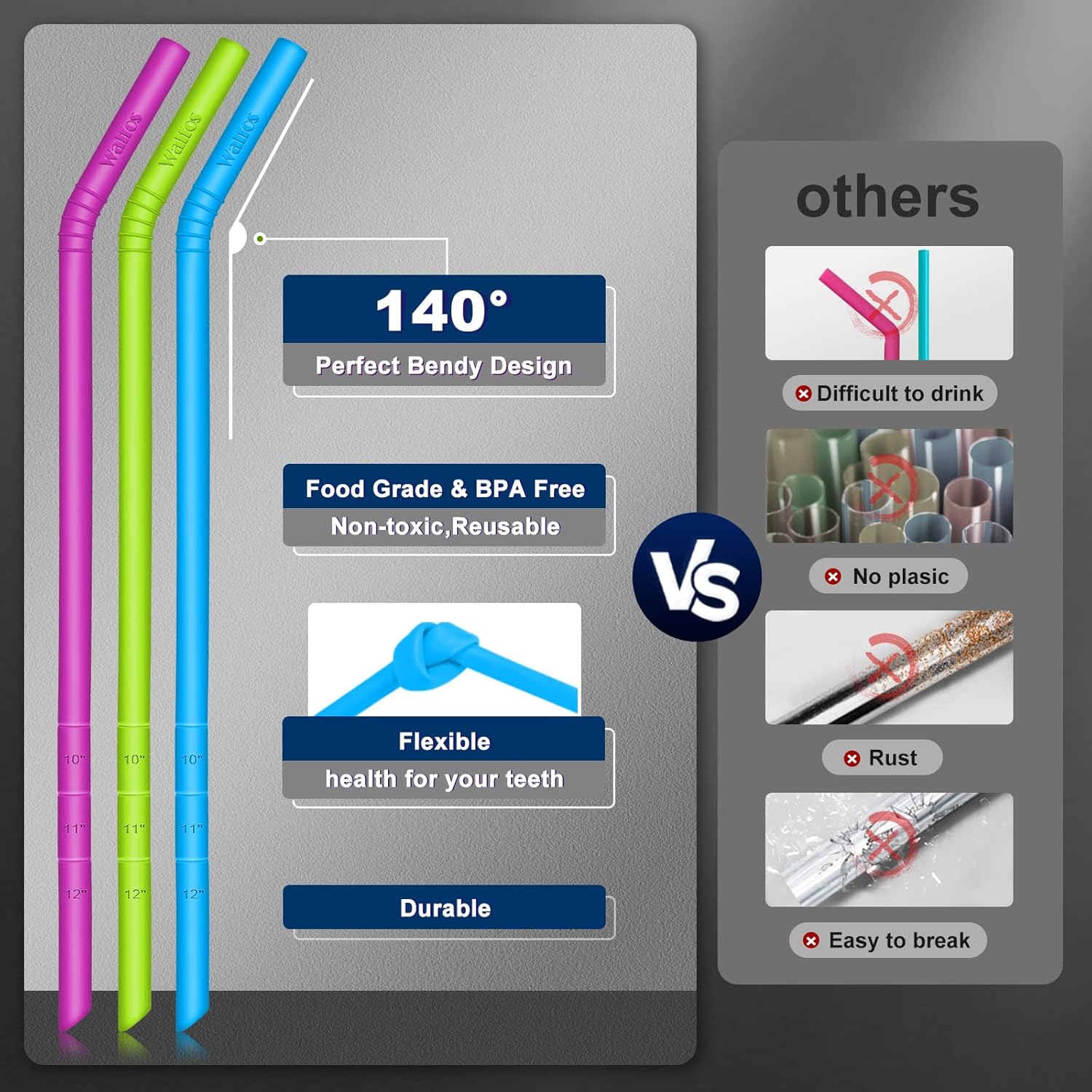 - 【Food Grade Platinum Silicone】 Extra long reusable silicone straws are made of high quality food grade silicone, BPA free. reusable bendable straws are healthy and eco-friendly , soft and flexible silicone straws won't cause any harm to your teeth .