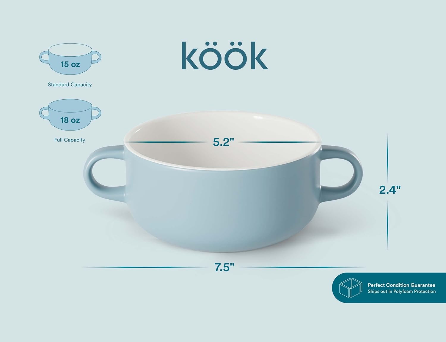 - The Kook Promise: To guarantee that your soup crock arrives in great condition, we've carefully wrapped it in unique polyfoam molds. (Includes bonus recipe card)