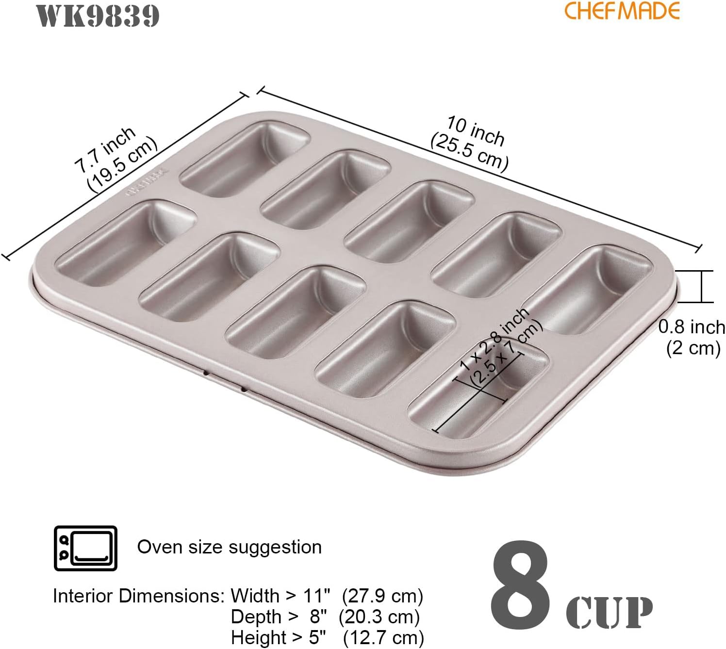 CHEFMADE Financier Cake Pan, 10-Cavity Non-Stick Rectangle Muffin Pan Biscuits Cookies Bakeware for Oven Baking (Champagne Gold)