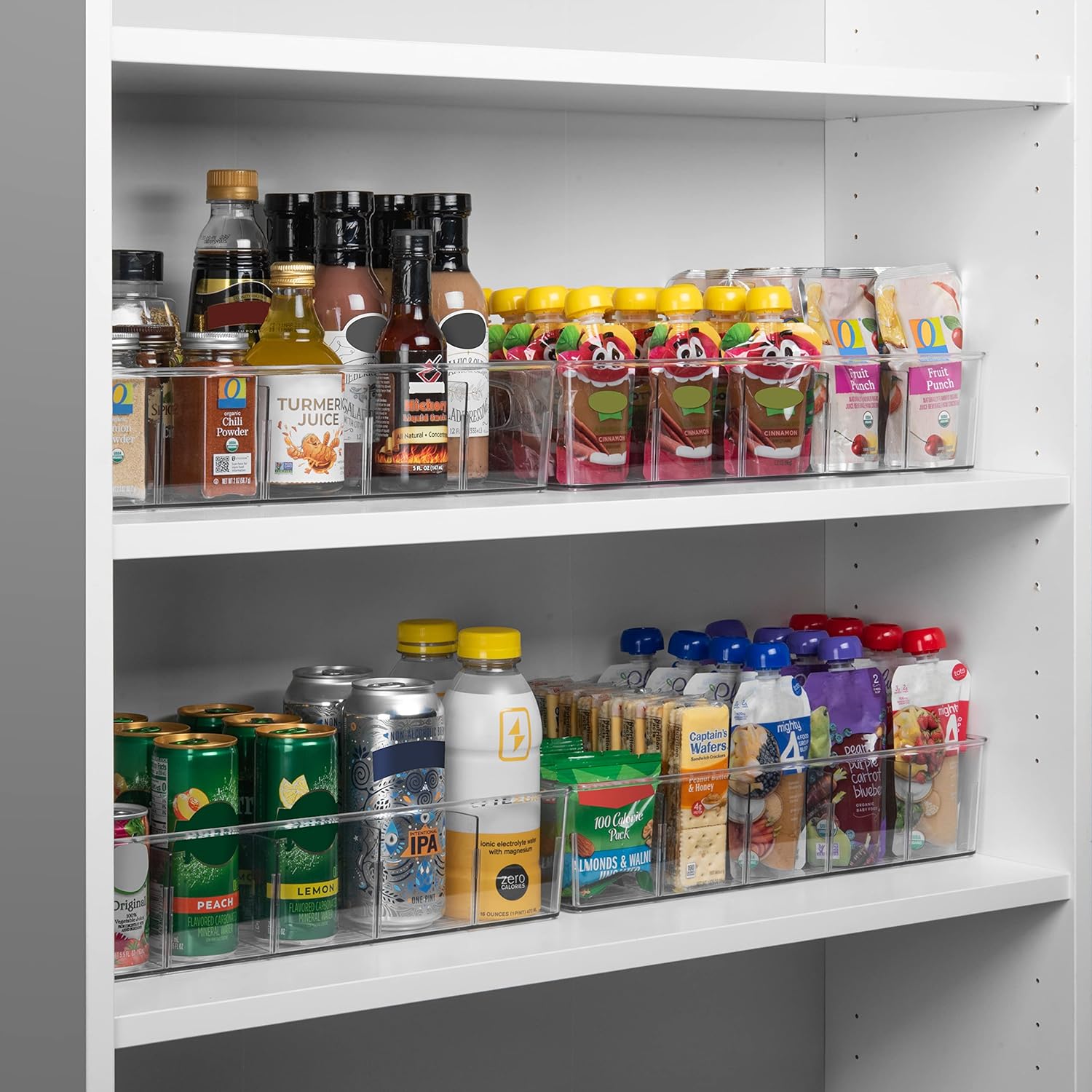 ClearSpace Plastic Pantry Organization and Storage Bins with Removable Dividers – 4 Pack XL Perfect Kitchen Organization or Kitchen Storage – Refrigerator Organizer Bins, Cabinet Organizers