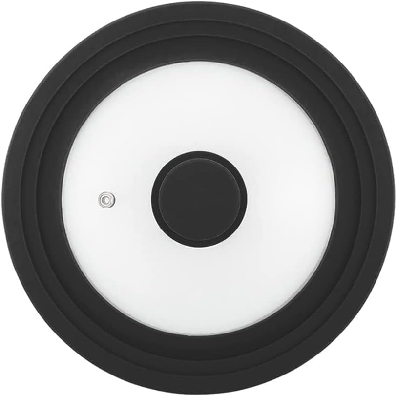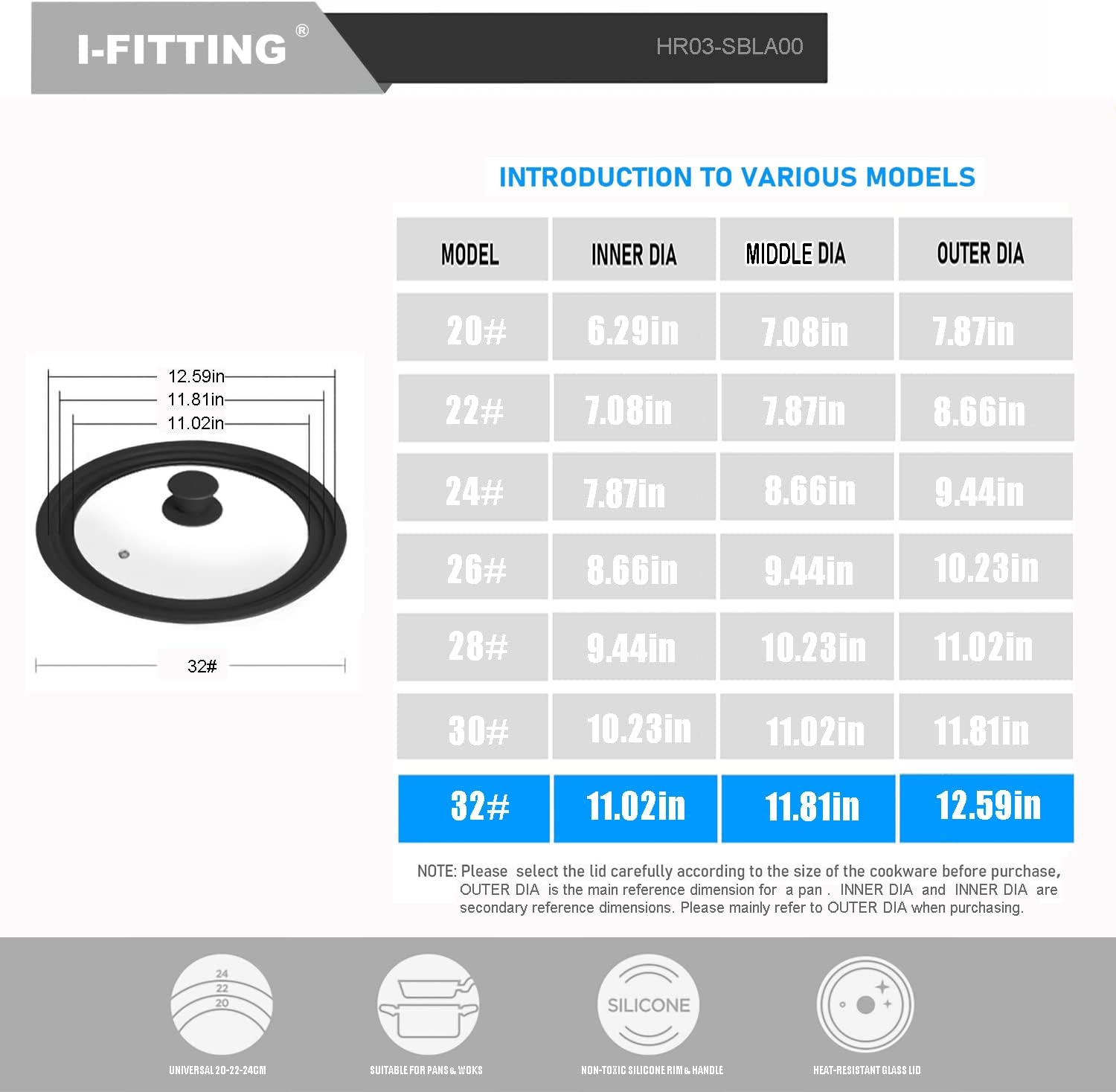 - 【UNIVERSAL LID WITH STEAM VENT】 Universal silicone glass cover lid suitable for pan/pot/skillet/saucepan/frying pan/soup pot , can fit 11” ,12” ,12.5” (28,30,32CM ) cookware. Designed with stainless steel steam vent, effectively prevent overflow during cooking