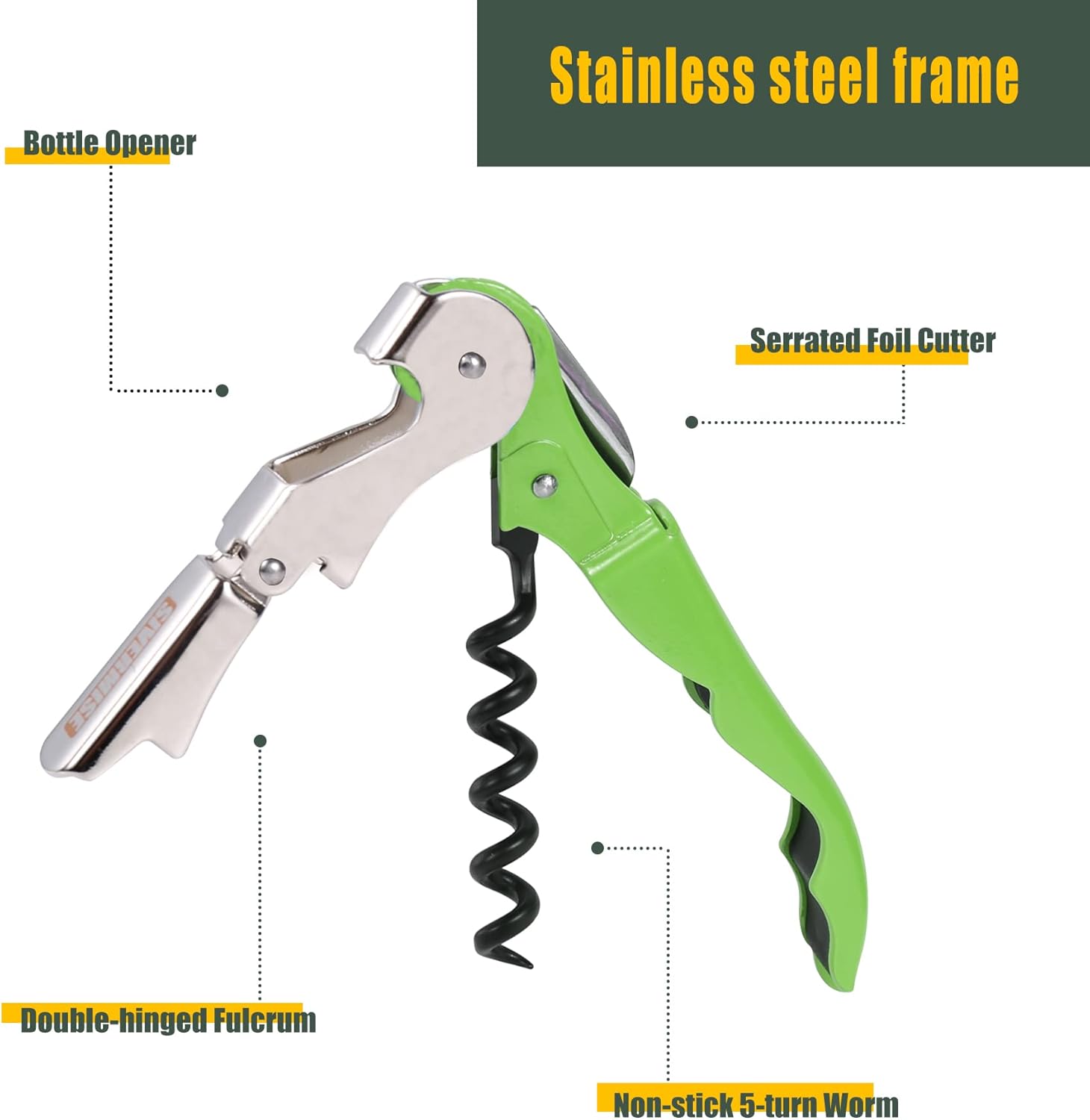 - Multi-functional - Integrated with wine opener, beer opener, serrated foil cutter, double-hinged fulcrum and non-stick 5-turn worm, premium and professional