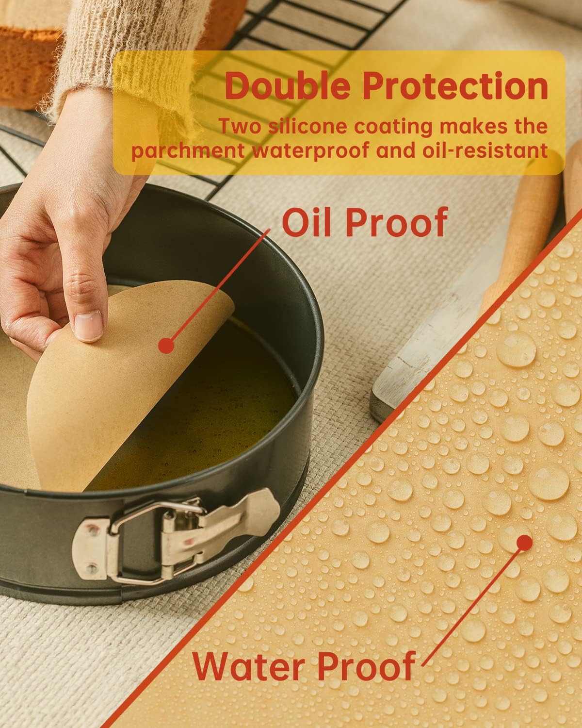 - Non-Stick & Easy to Clean: Parchment rounds use the double silicone coating side design, which means that no food residue will be left on your pans, and insures your cake that comes neatly out of the pan,you can easily clean and save your time.Easier cooking!