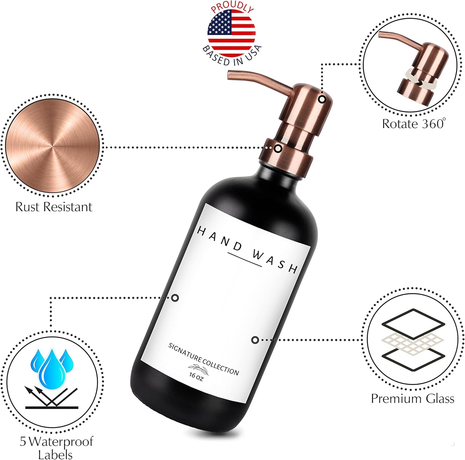 - ✅ U.S.A. BENEFITS: We love and take pride in our glass soap dispensers with pumps. Our dish soap hand soap dispenser set comes with a 10-year warranty and we are proudly based in the USA. If you’re at all unsatisfied with your dish and hand soap dispenser set, please contact us and we will resolve the issue.