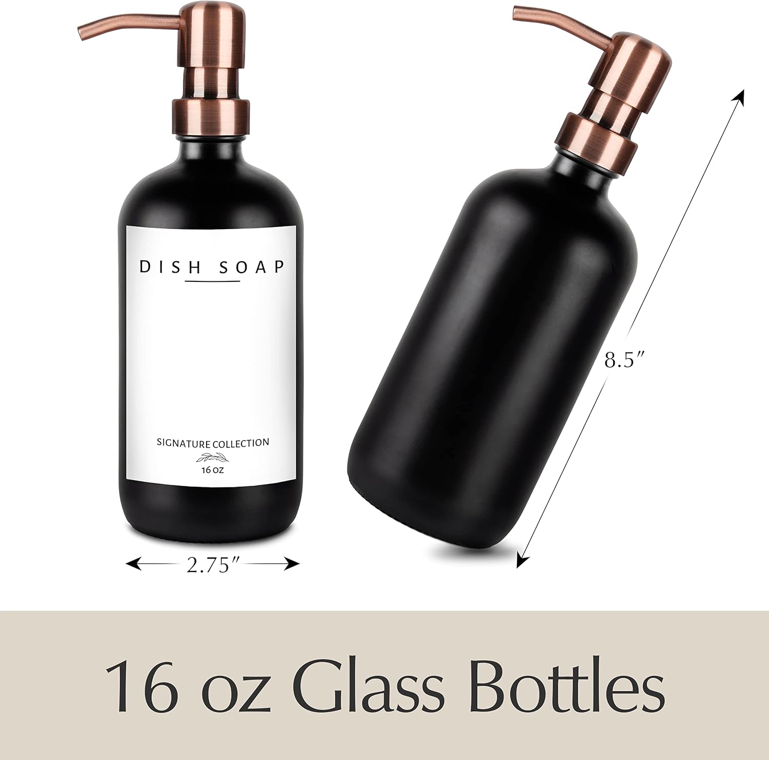 - ✅ 2-in-1 COMBO: Upgrade your home with our glass soap dispenser set. The dish soap dispensers are crafted from the highest quality glass and can be used as soap dispensers for kitchen sinks, soap dispensers for bathrooms, or as hand soap dispenser of your favorite liquid. The kitchen soap dispensers come with 2 dish soap dispensers for kitchen bottles (16 ounces), 2 stainless steel pumps, and 5 waterproof labels. Our selection includes colors including amber, clear, white, and black.