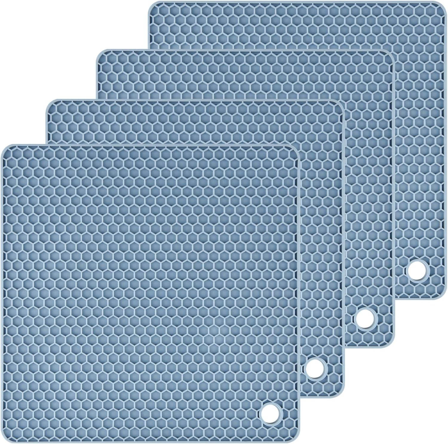 Silicone Trivets for Hot Dishes & Pans, Multi Pot Holders, Heat Resistant Mats for Countertop Set 4 Blue