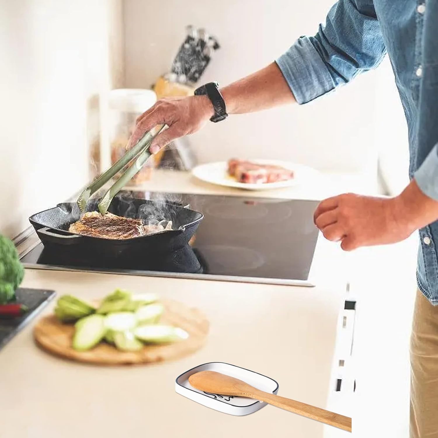 - Generous Size: No need to hesitate to choose the size of the ceramic spoon rest for stove top. NJCharms spoon rest with a wide square surface that can fit all utensils. Stop sauce flow out to your countertop, and place tools onto utensil rest. Let the spoon holder for stove top come into your life, it's a decoration that can be easily matched with different kitchens.