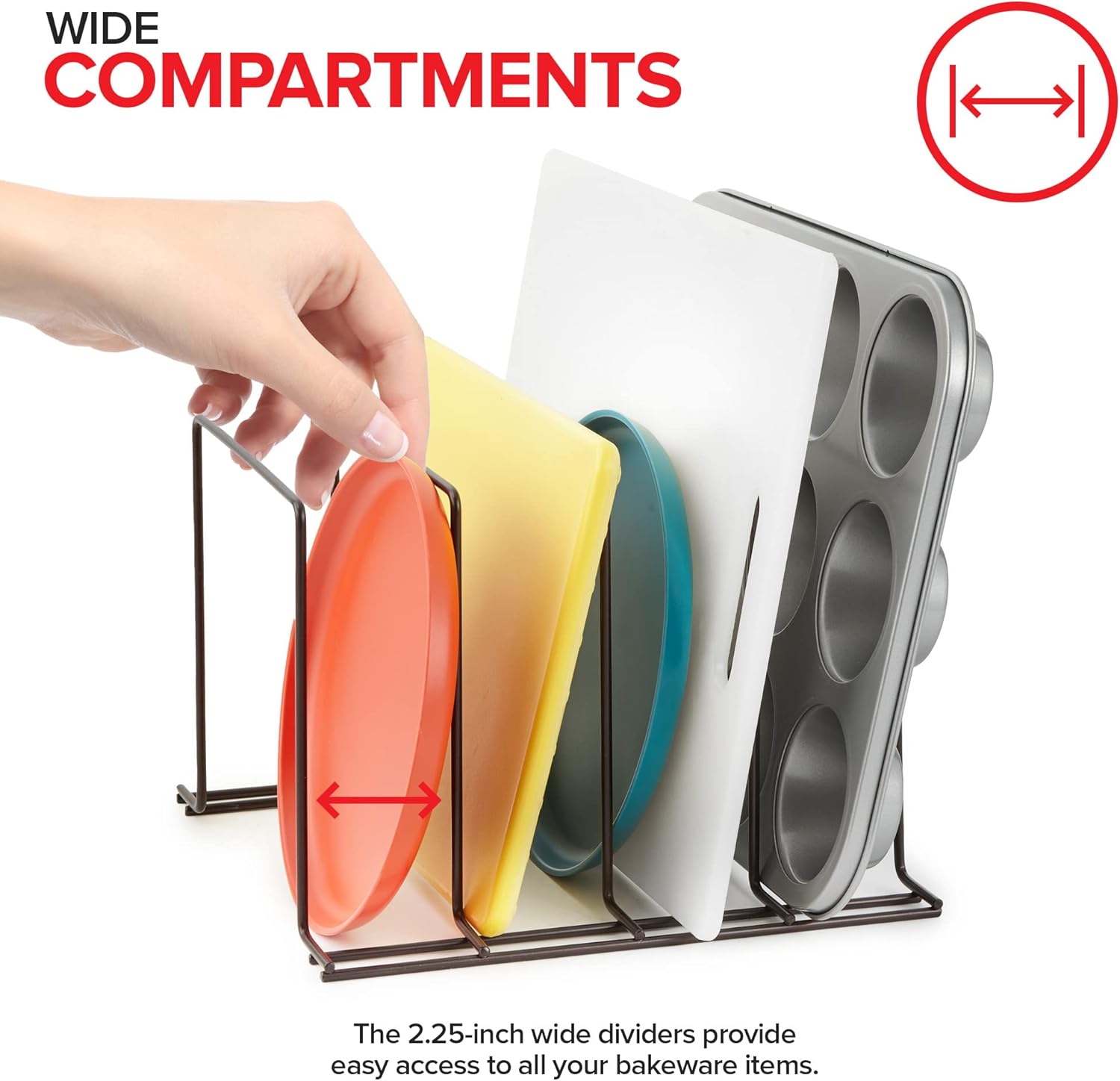 - Multipurpose: Our bakeware rack is perfect for organizing a baking/cookie sheet, big dish or plate, tray, pans, tins, and cutting boards. Its also rust resistant, so it can also be a cooling/drying rack. No assembly or tools are required!
