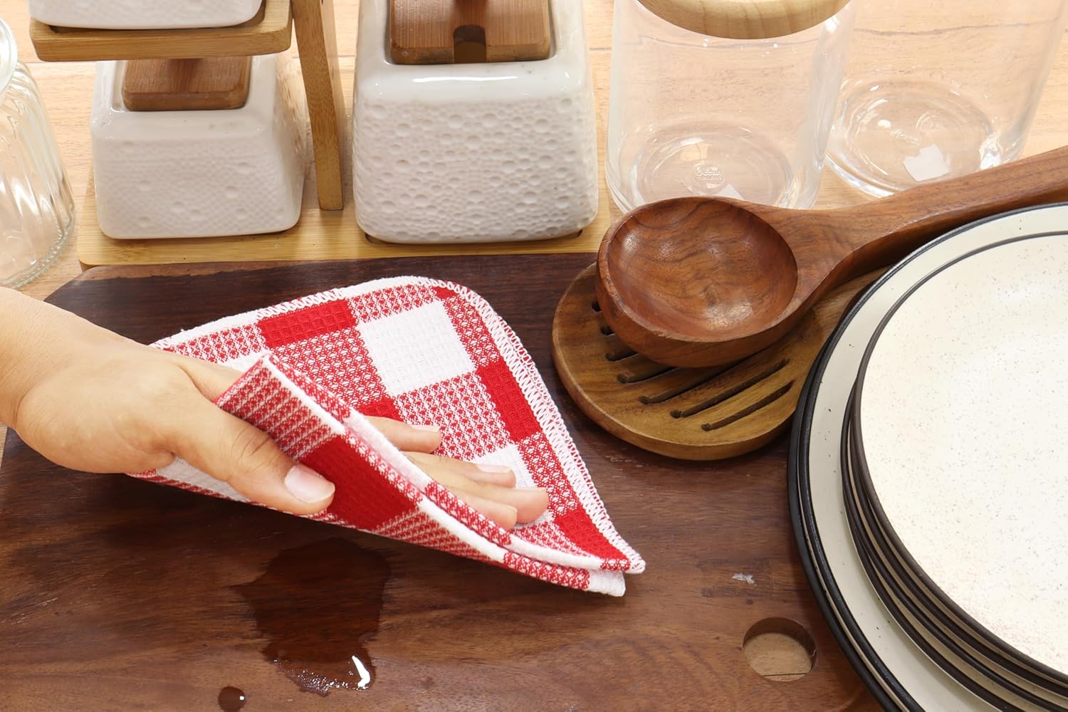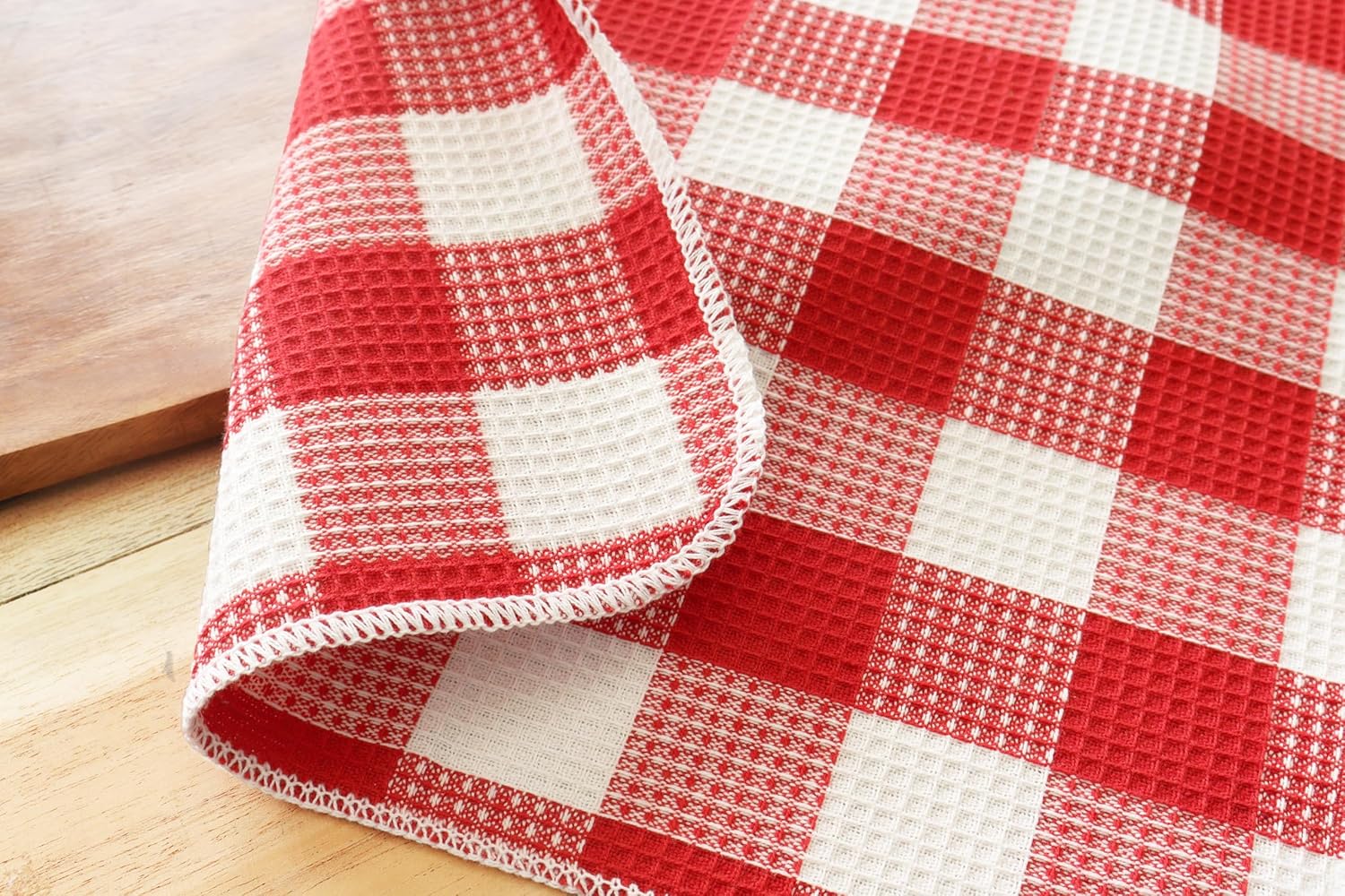 PurpleEssences Waffle Weave Plaid Dish Cloths, 100% Cotton - 12 x 12 Inches, Ultra Soft Absorbent Quick Drying Dish Towels Buffalo Check Dish Rags for Kitchen, 8 Pack - Spring Summer - Red & White