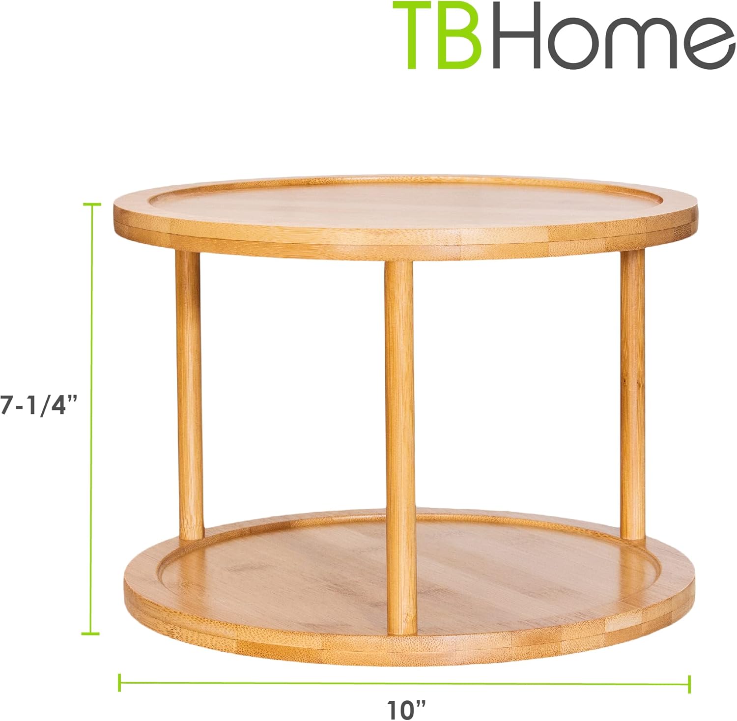 TB Home Two-Tier Bamboo Wood Lazy Susan Organizer Kitchen Turntable for Cabinet, Table or Pantry Organization