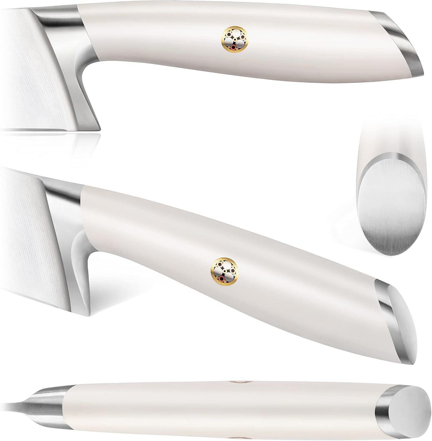 Cangshan L1 Series White 1026078 German Steel Forged 12-Piece Knife Block Set with 6 Steak Knives, Acacia Block