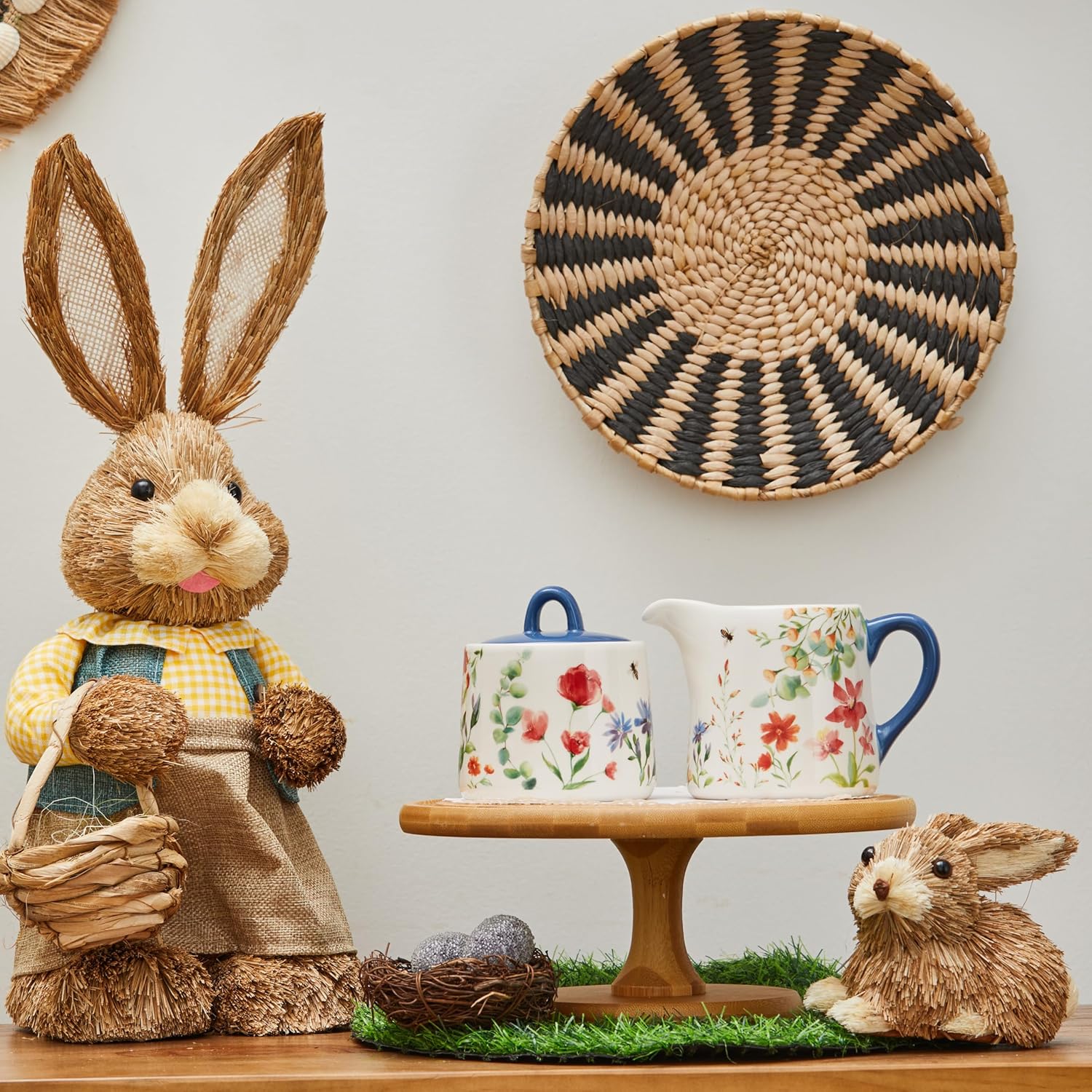 Bico Summer Provence Ceramic Sugar and Creamer Set, Sugar Bowl with Lid, Cute Container for Coffee Bar, Kitchen Countertop Accessories, Microwave and Dishwasher Safe