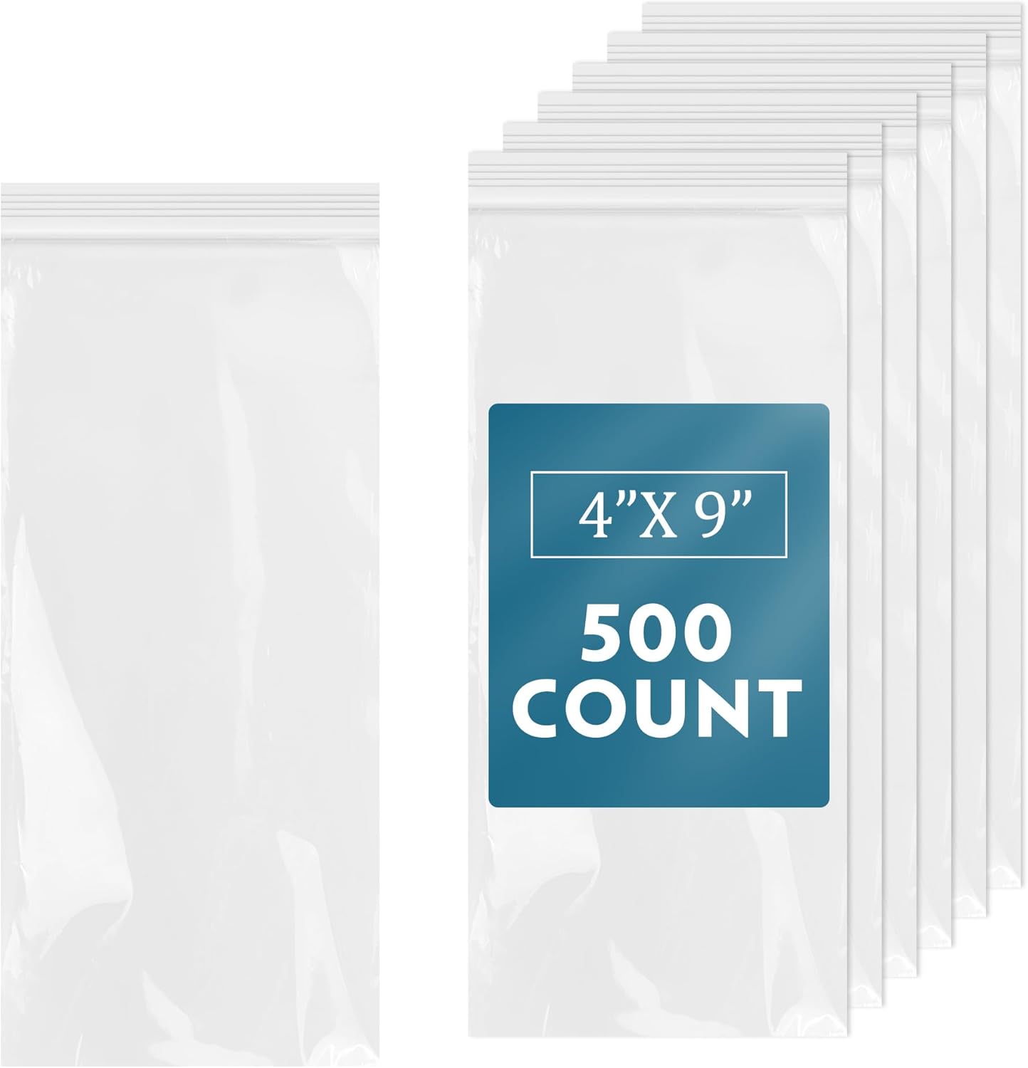 iMailer - 500 Pcs -4" x 9" Incense Bags-Resealable Zip Bags for Snack, Necklaces, Jewelry, Packaging & Shipping