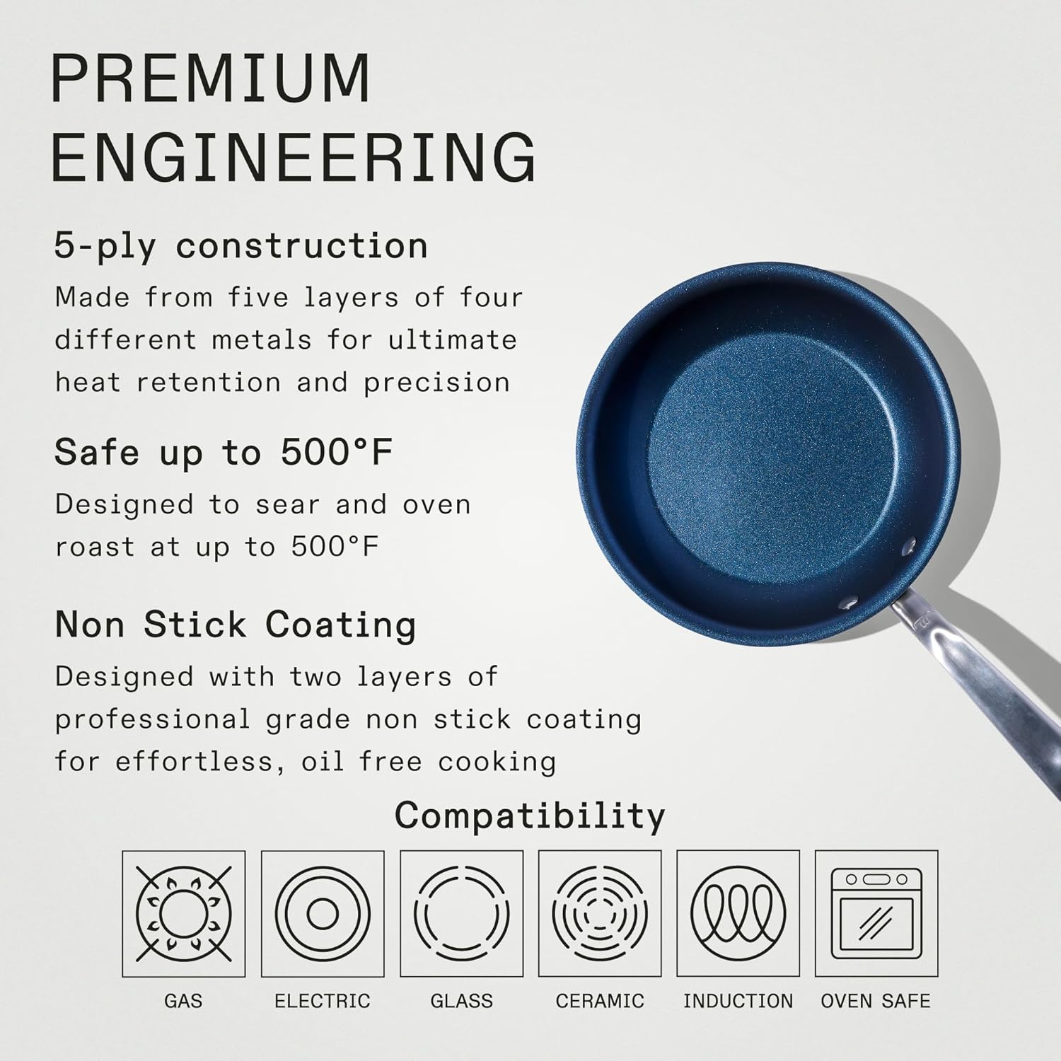 Made In Cookware - ProCoat 8" Non Stick Frying Pan (Harbour Blue) - 5 Ply Stainless Clad Nonstick - Professional Cookware - Induction Compatible