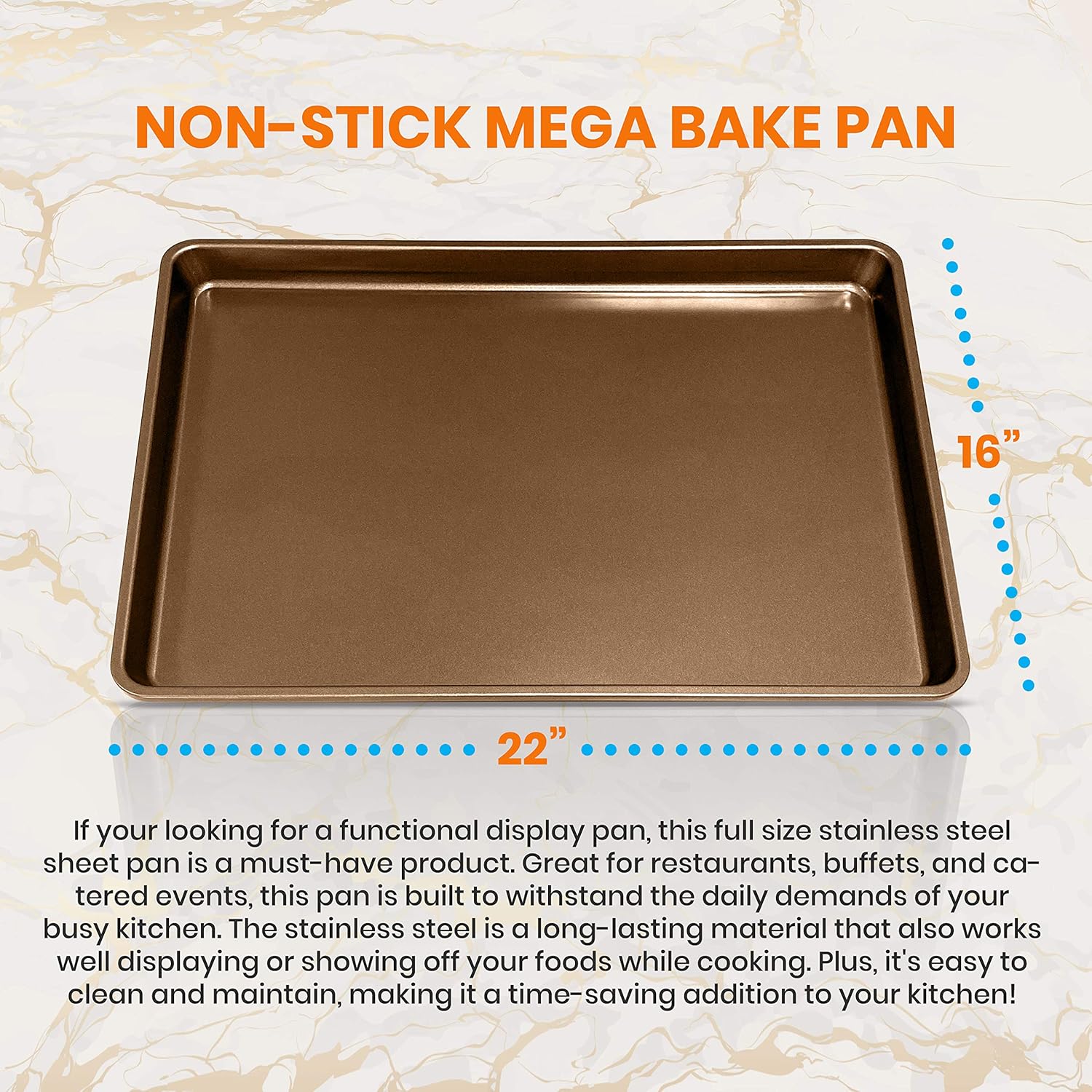 - MADE TO LAST: Features durable & reliable cookie sheet oven pan style and is made of engineered carbon steel metal alloy w/ attractive stylish metallic coating that can complement any kitchen countertop design
