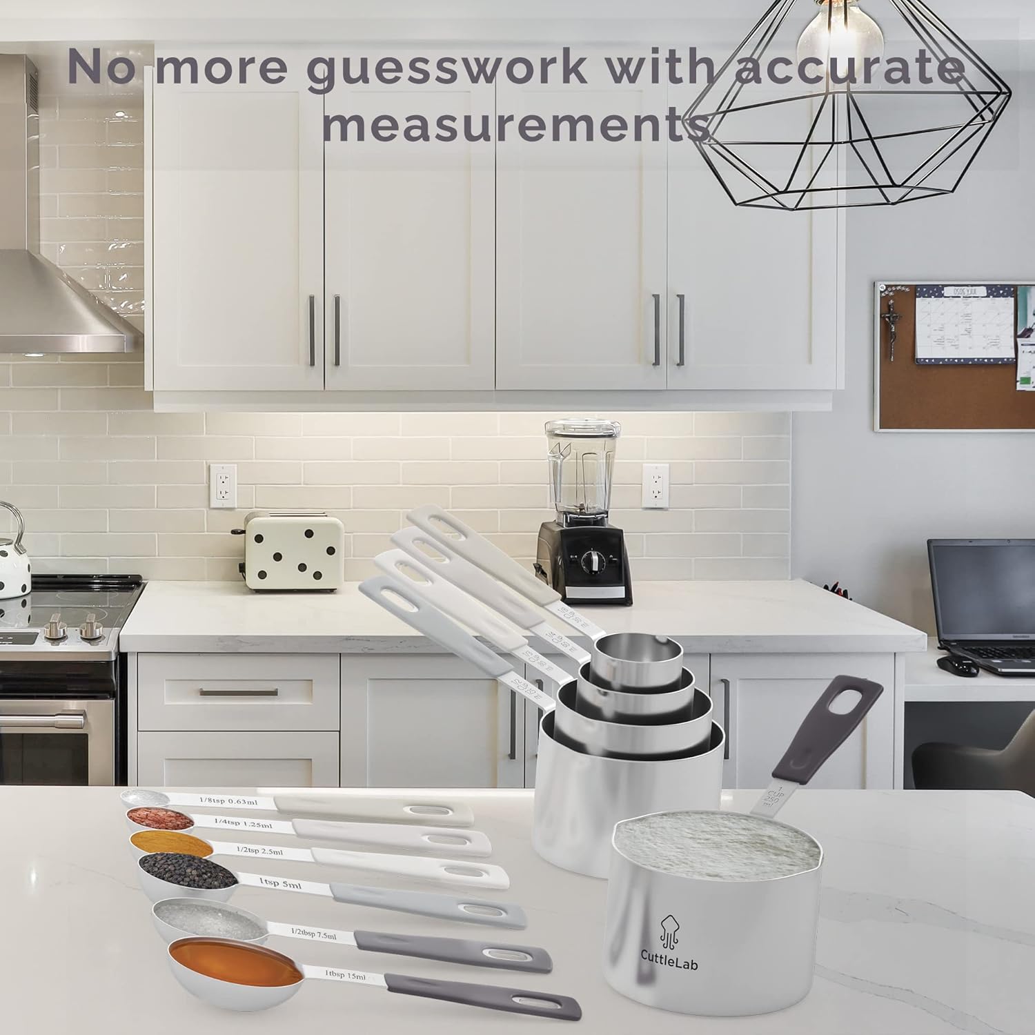 Measuring Cups and Measuring Spoons Set of 14 - Stainless Steel Measuring Cups and Spoons Set, Includes 1/8 Teaspoon Measuring Spoon, 1/8 Cup Measuring Cup, Leveler Dry (14, Charcoal)