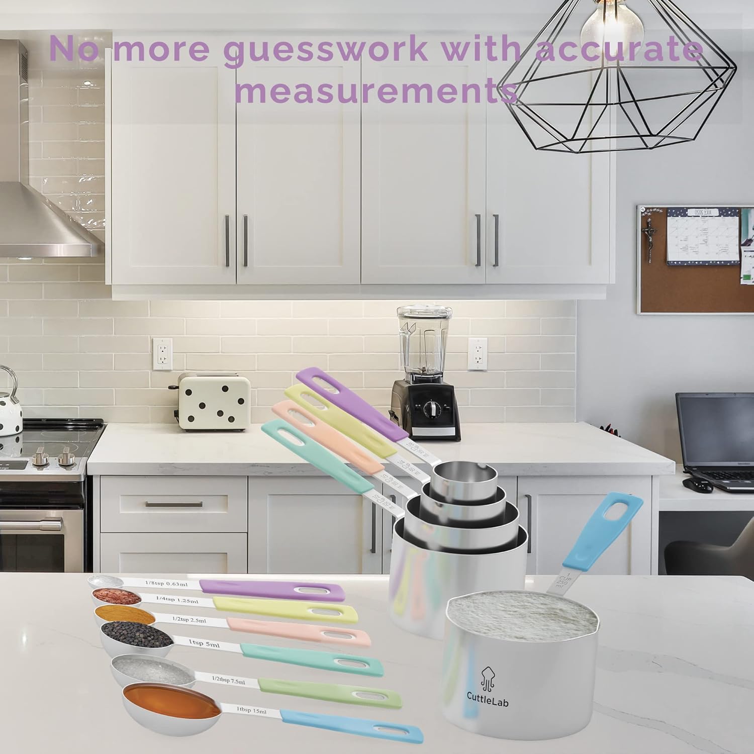 Measuring Cups and Measuring Spoons Set of 14 - Stainless Steel Measuring Cups and Spoons Set, Includes 1/8 Teaspoon Measuring Spoon, 1/8 Cup Measuring Cup, Leveler Dry (14,Cotton Candy)