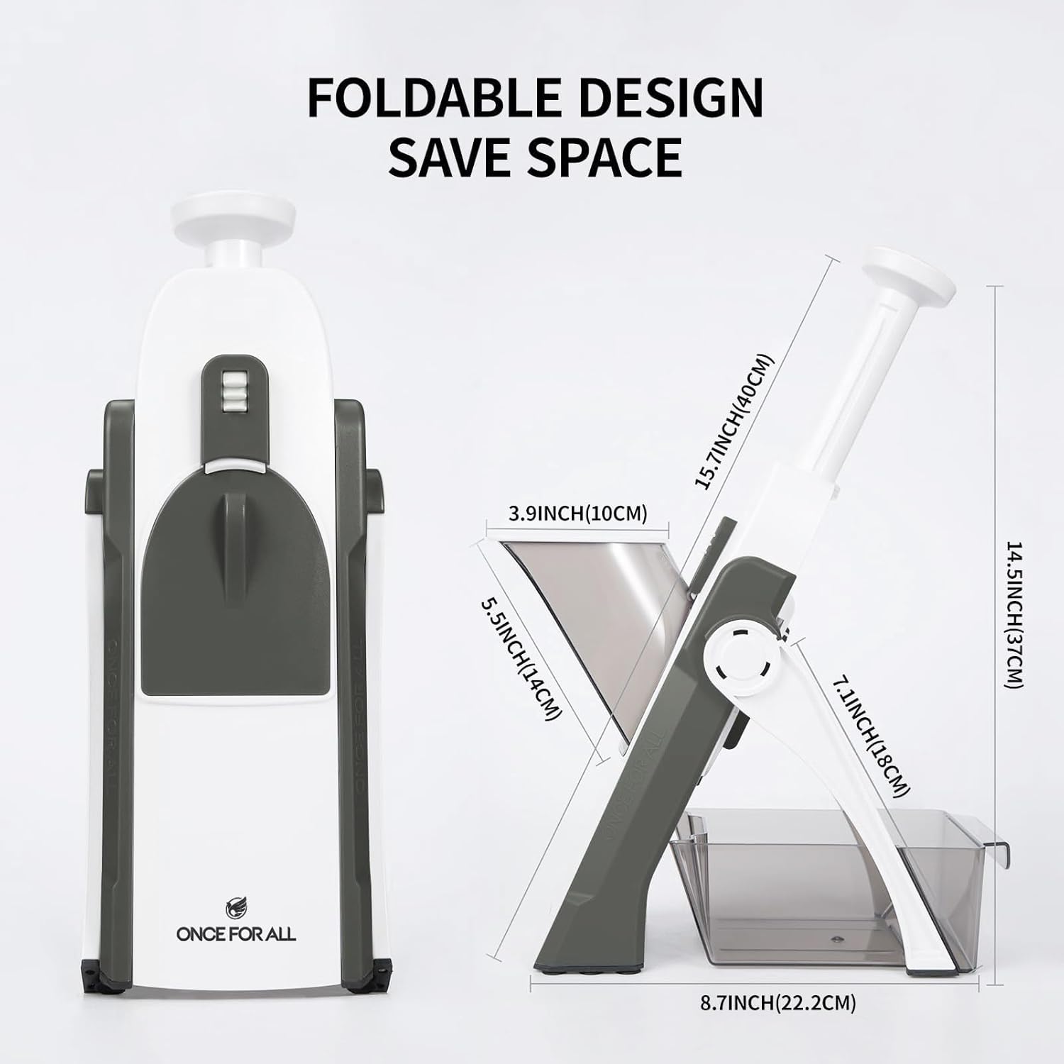 - UPGRADE LARGE CAPACITY: ONCE FOR ALL's JS03 vegetable slicer larger feeding port & container chopper more food at once, offers 4 mode choices julienne, matchstick, slicing, and dicing at once no need to change the blade. Adjustable thickness 0.1-8mm great for quickly slicing potatoes, carrots, cucumbers…