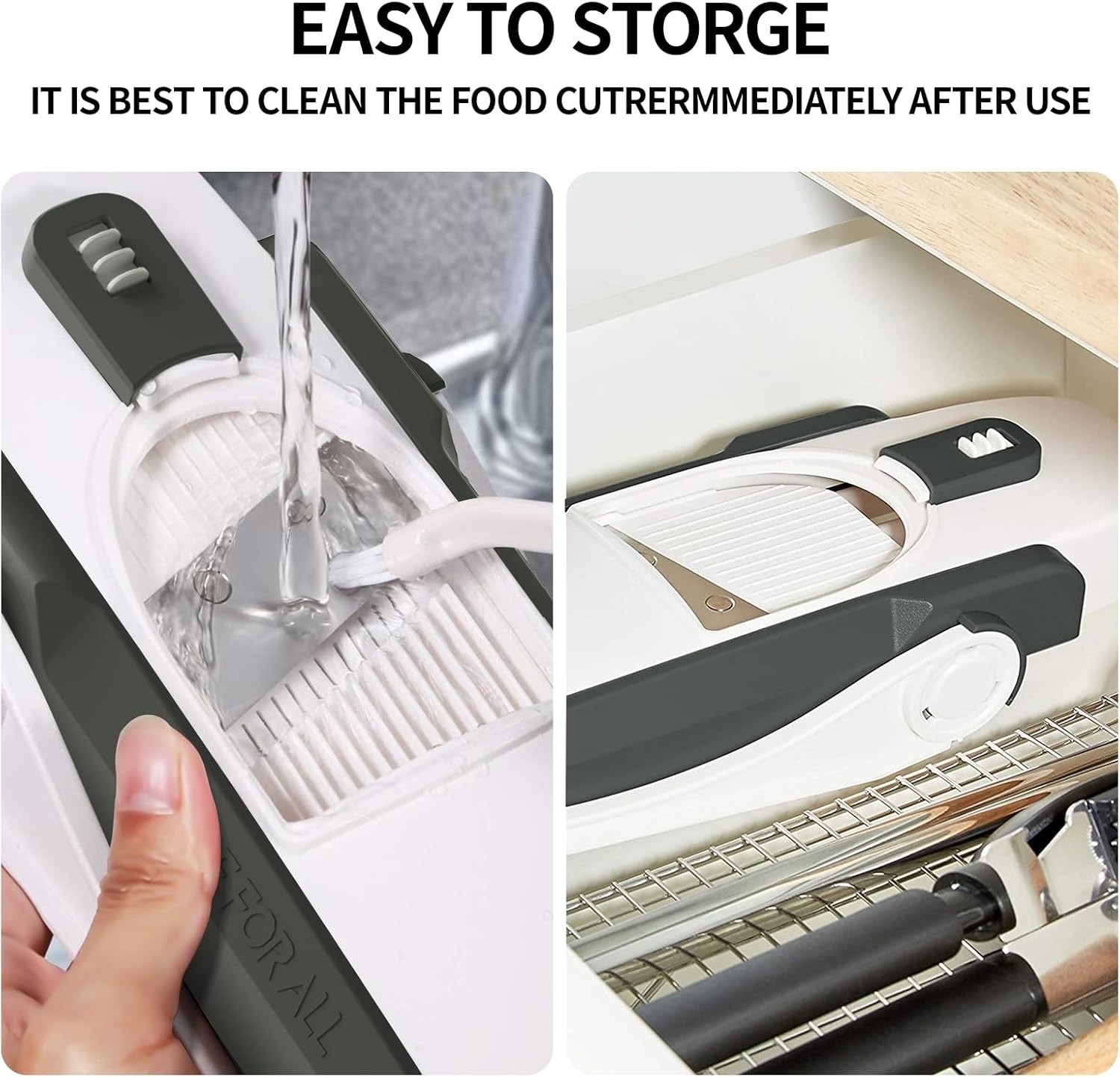 - SAFER SLICER: Safety mandolin slicer for any cook. Sharp hidden blade Slicing is fast, uniform, and easy to set up and clean up, and does not need to glove up or change the blade to use it, This is definitely an upgrade replacement your cooking daily.