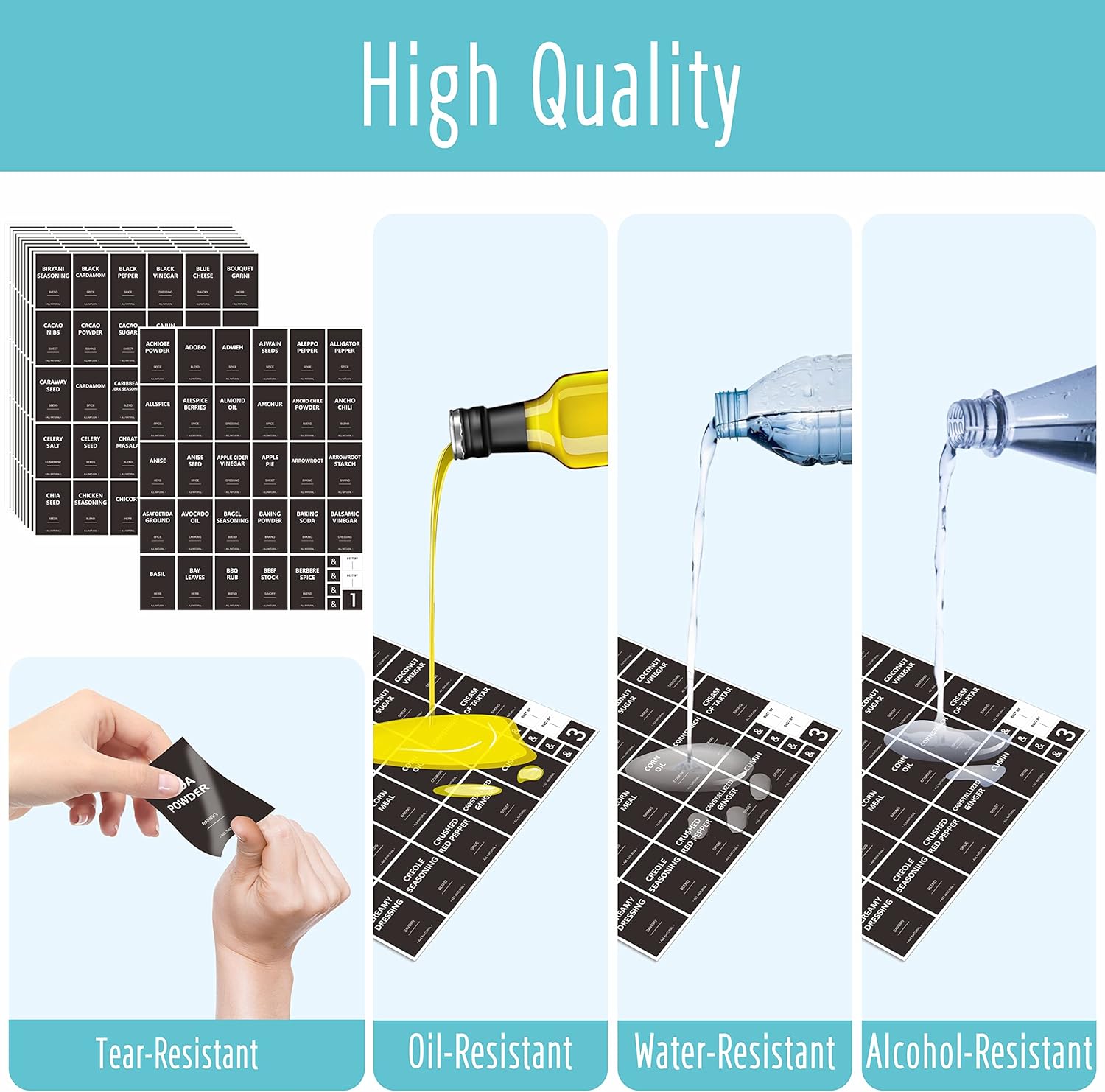 - HIGH QUALITY: Our labels are printed on waterproof oil resistant black matte PVC materials, tear resistant and washable. Premium adhesive backing ensures easy replacement and removal without residue.