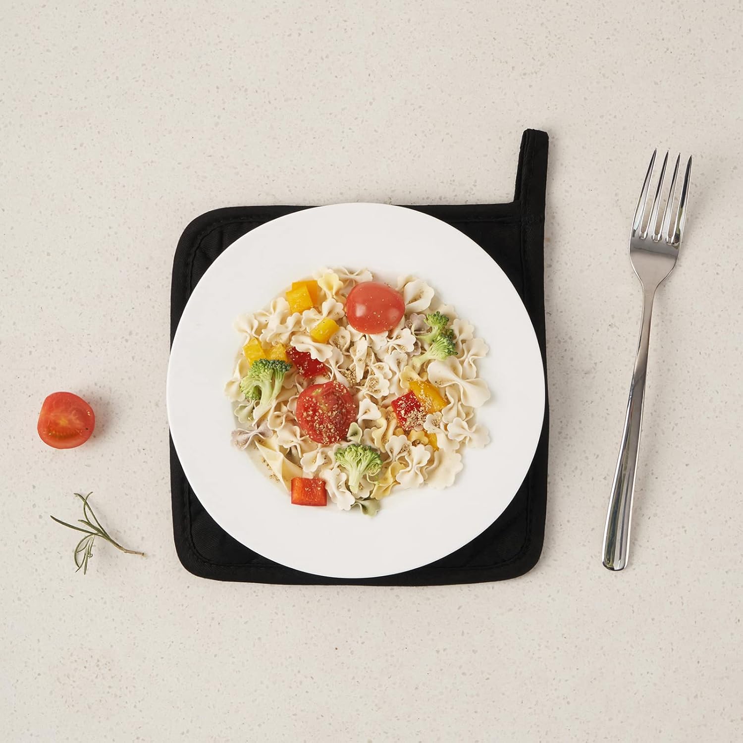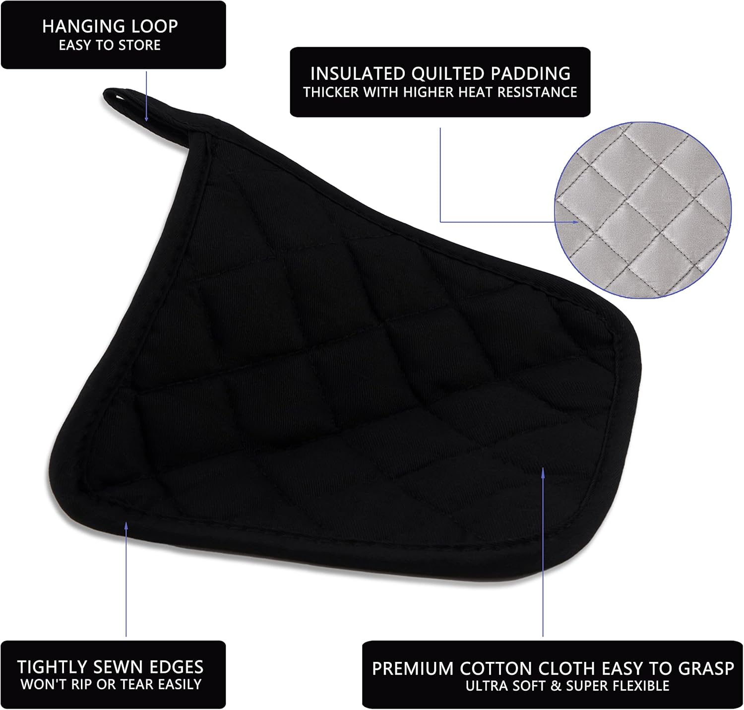 Kitchen Pot Holders Set Heat Resistant Pure Cotton Potholders Kit Trivets Large Coasters Hot Pads Terry Pot Holders for Everyday Cooking and Baking by 7 x 7 Inch Set of 6 Black