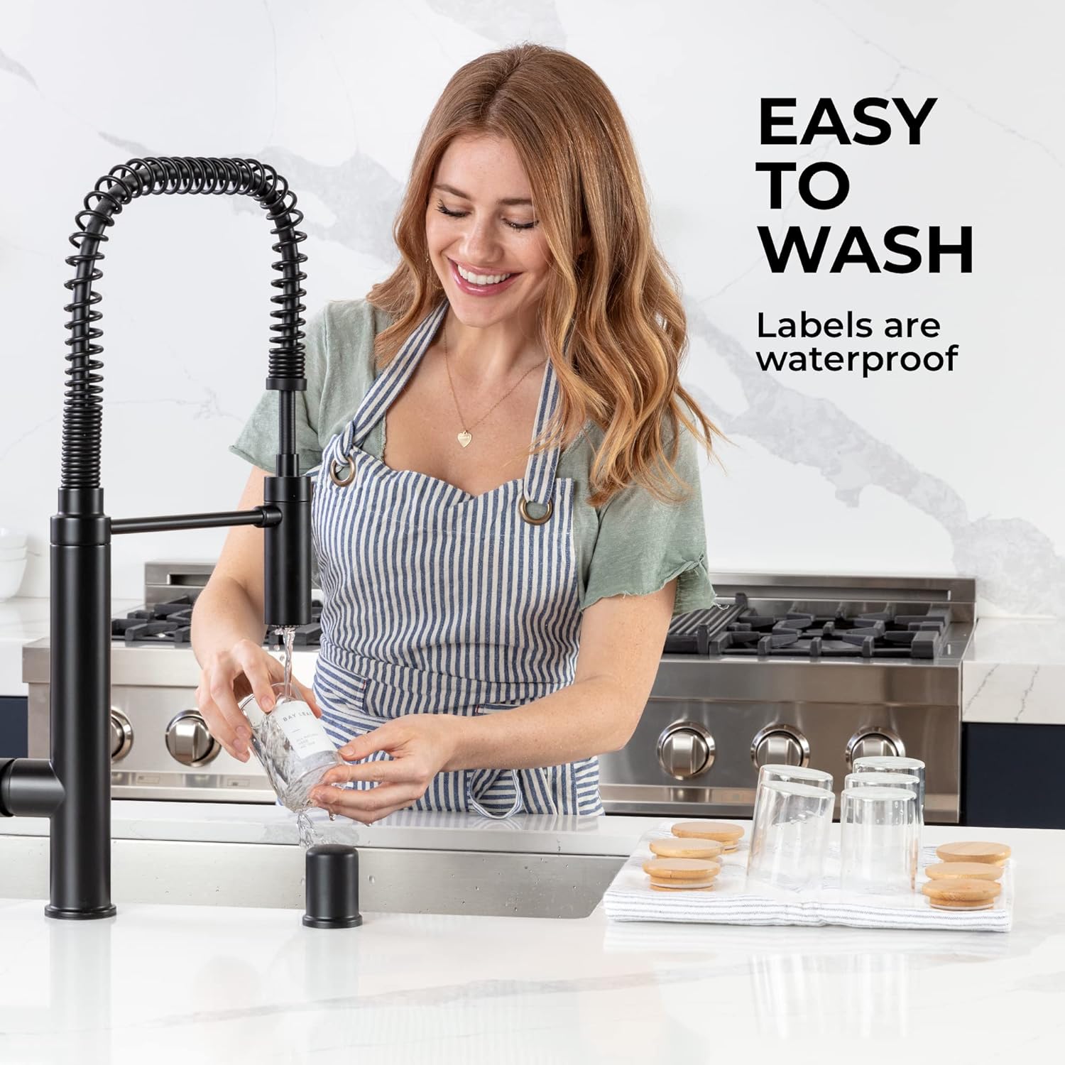 - With Perfectly Sized Labels: Your set includes pre-printed 160 labels for food containers, and they are cut to fit every spice jar without overpowering! Your spice bottles labels also include 8 blank labels and 40 expiration labels to personalize your small glass jars or any glass food storage containers!
