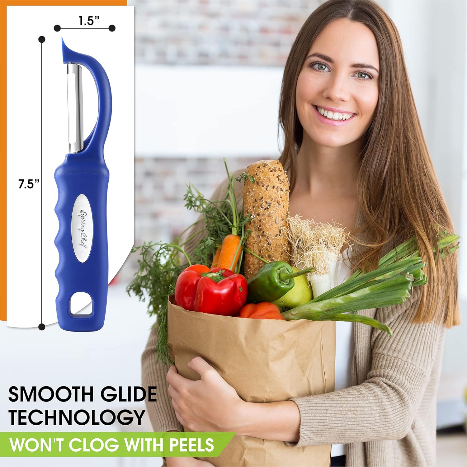 - Smooth, Effortless Peeling - Dual Stainless Steel blades stay ultra sharp and swivel to glide along fruits and vegetables easily. Includes a built-in blemish remover.