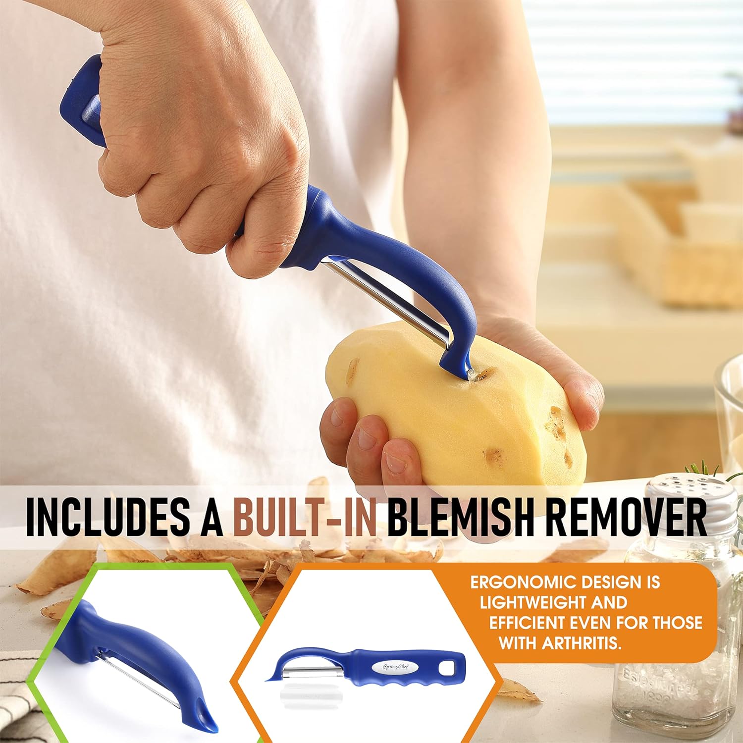 Spring Chef Stainless Steel Swivel Vegetable Peeler for Kitchen, Dishwasher Safe Potato Peelers with Comfortable Handle & Sharp Blades, Great for Apple, Carrot, Veggie, Fruit - Set of 2 - Sapphire