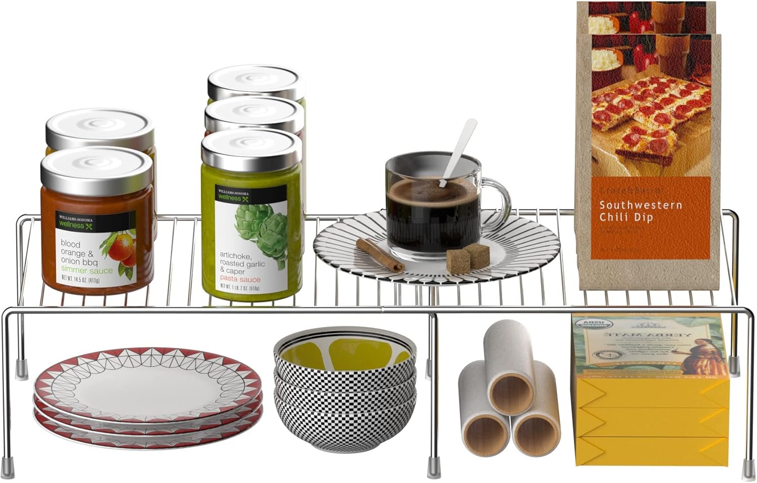 Redrubbit Cabinet Storage Shelf Rack, Expandable Metal Rustproof Kitchen Counter and Cabinet Shelf, Storage Rack Organizer Space Saver for Kitchen, Fridge, Cabinet, Bathroom, Chrome