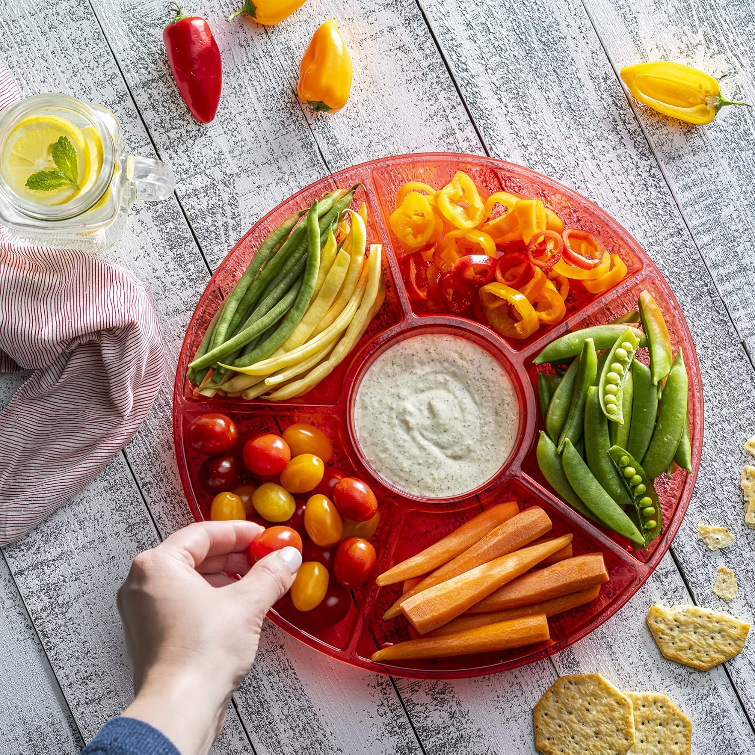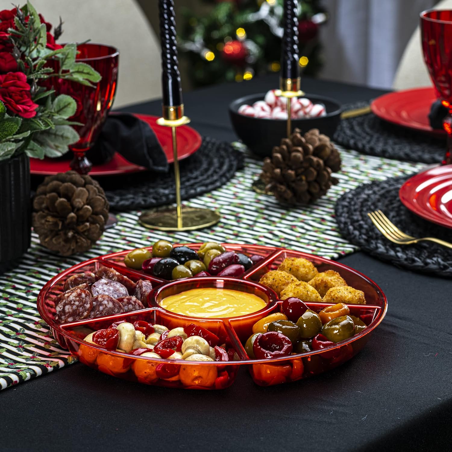 Plasticpro 6 Sectional Round Plastic Serving Tray/Platter (8, Red)